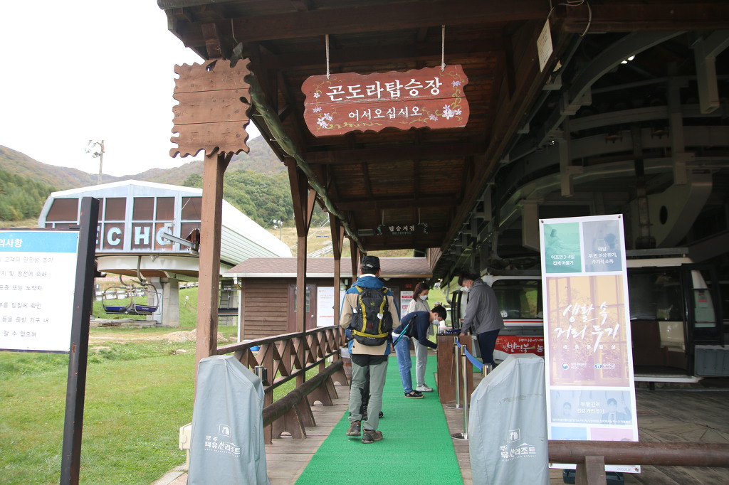 덕유산 무주리조트=>곤도라탑승=>설천봉=>향적봉(1,614m)=> 설천봉=>곤도라탑승=>무주리조트.0.6km20분소요(총2시간소요)