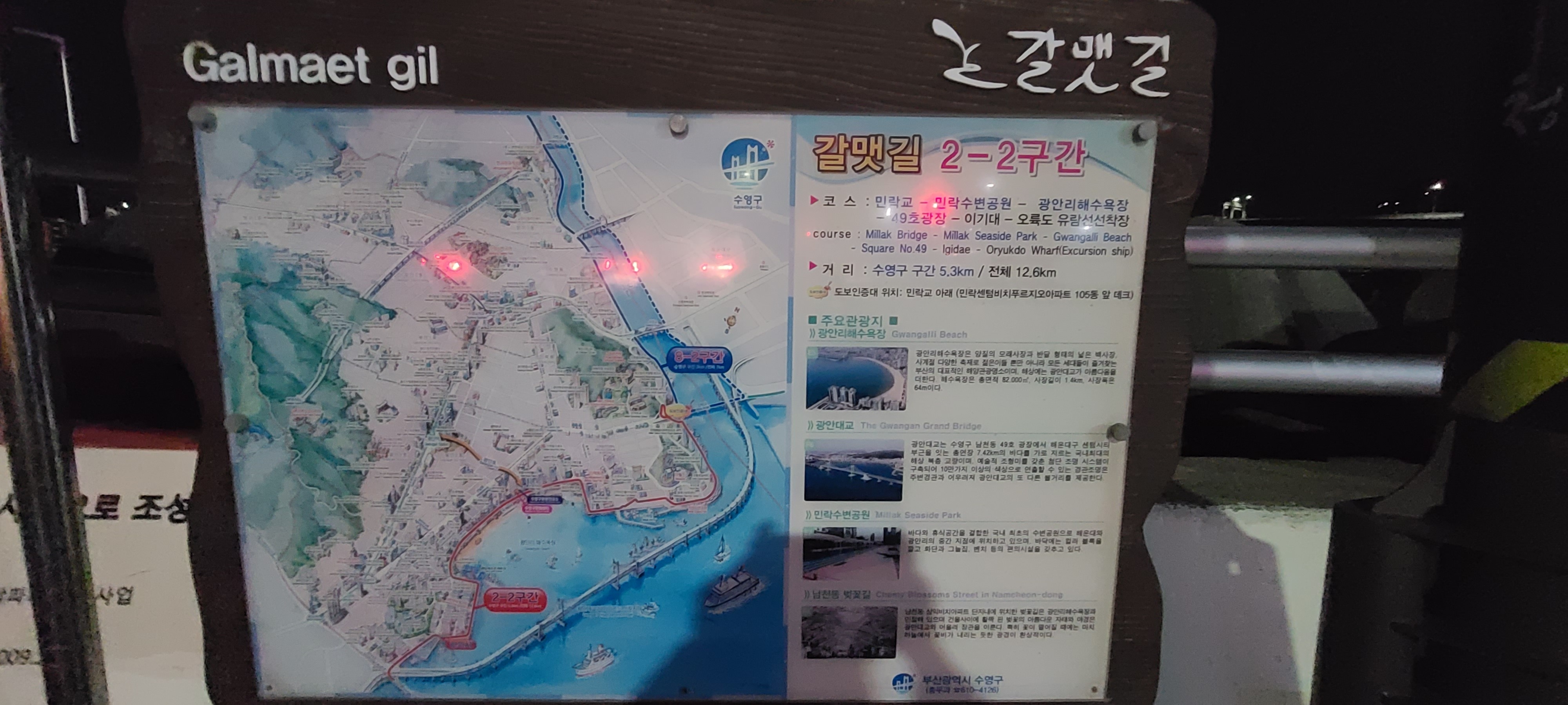 민락동=>광안리해수욕장=>남천동=>평화공원=>감만동