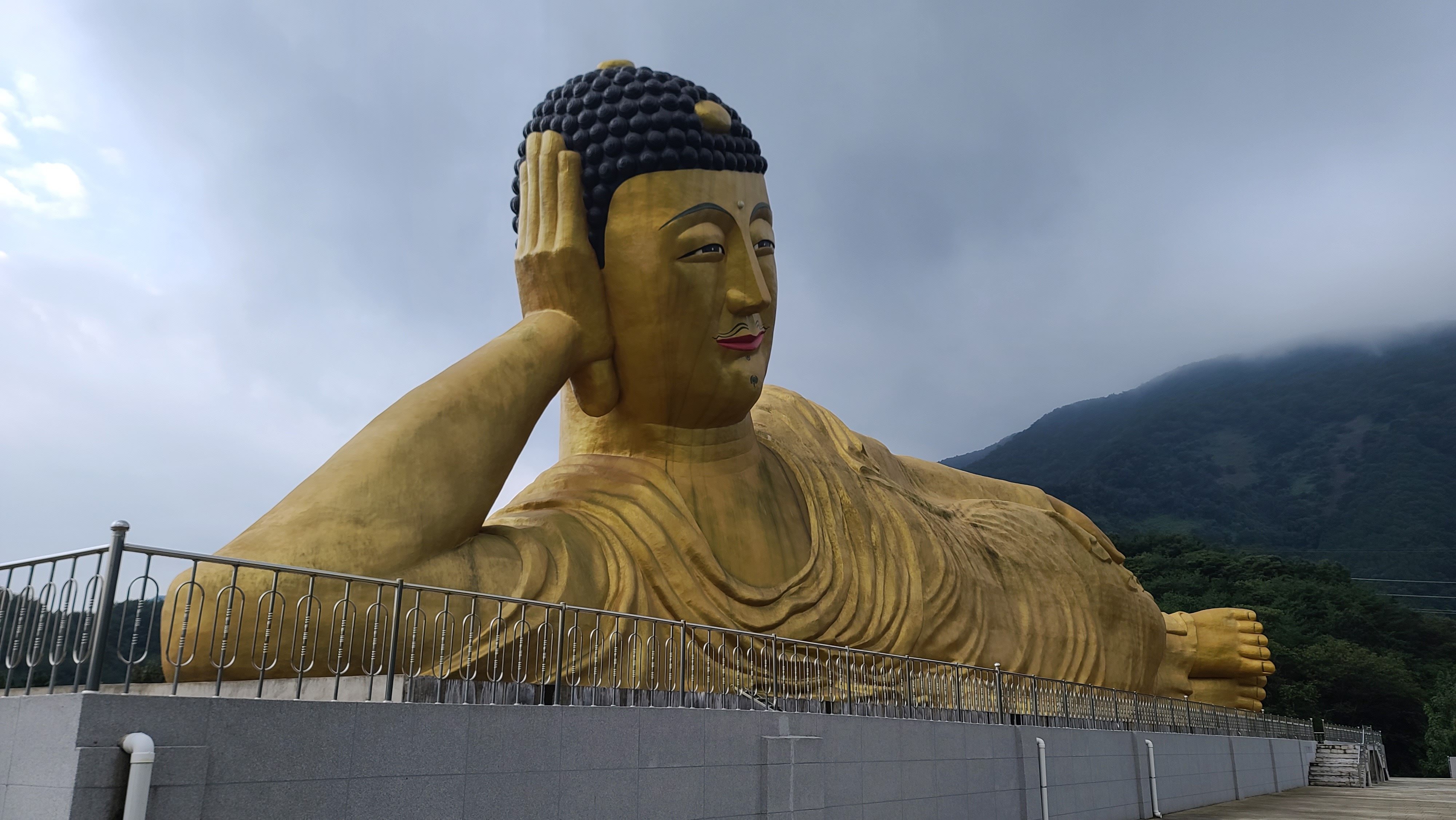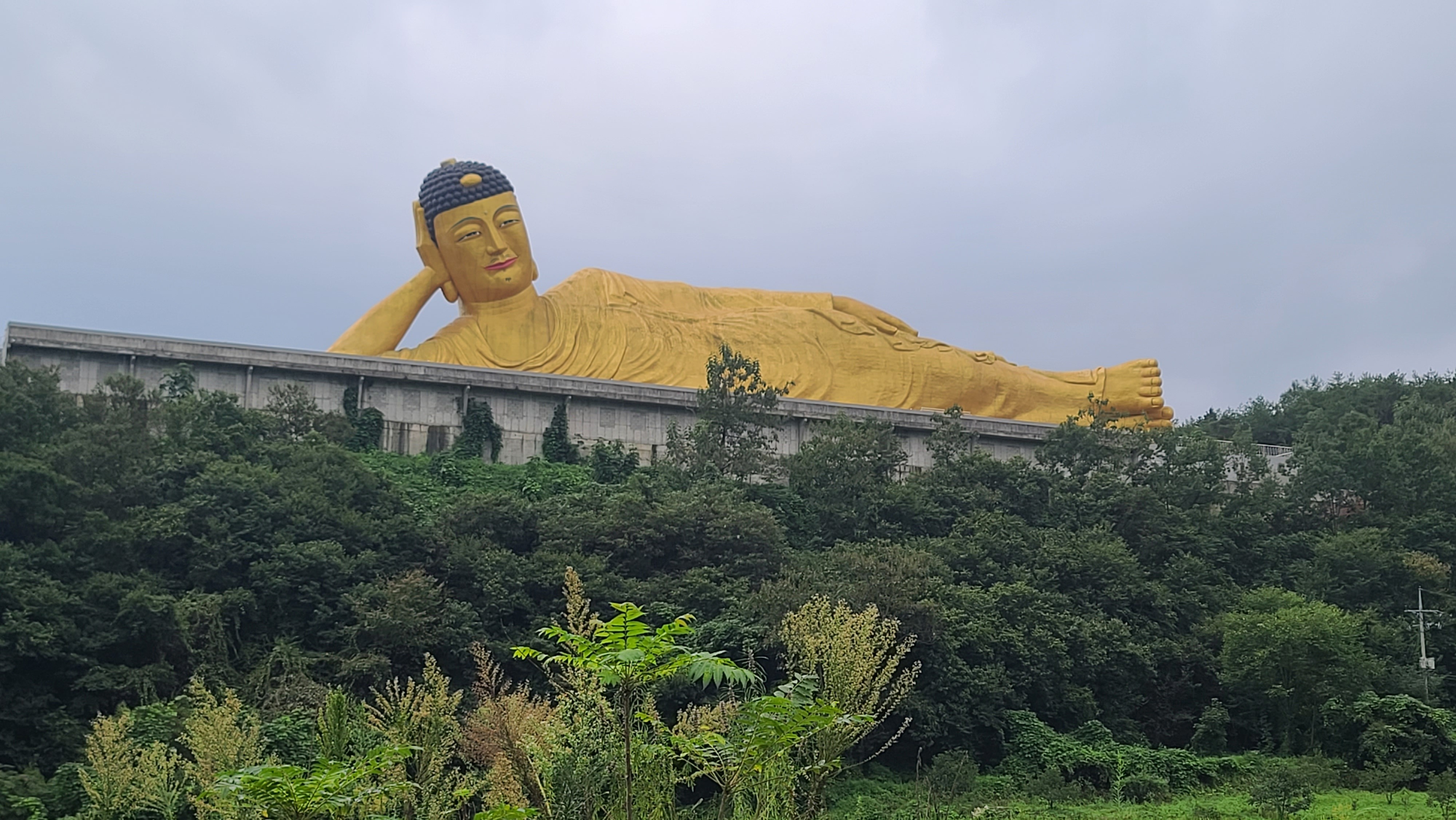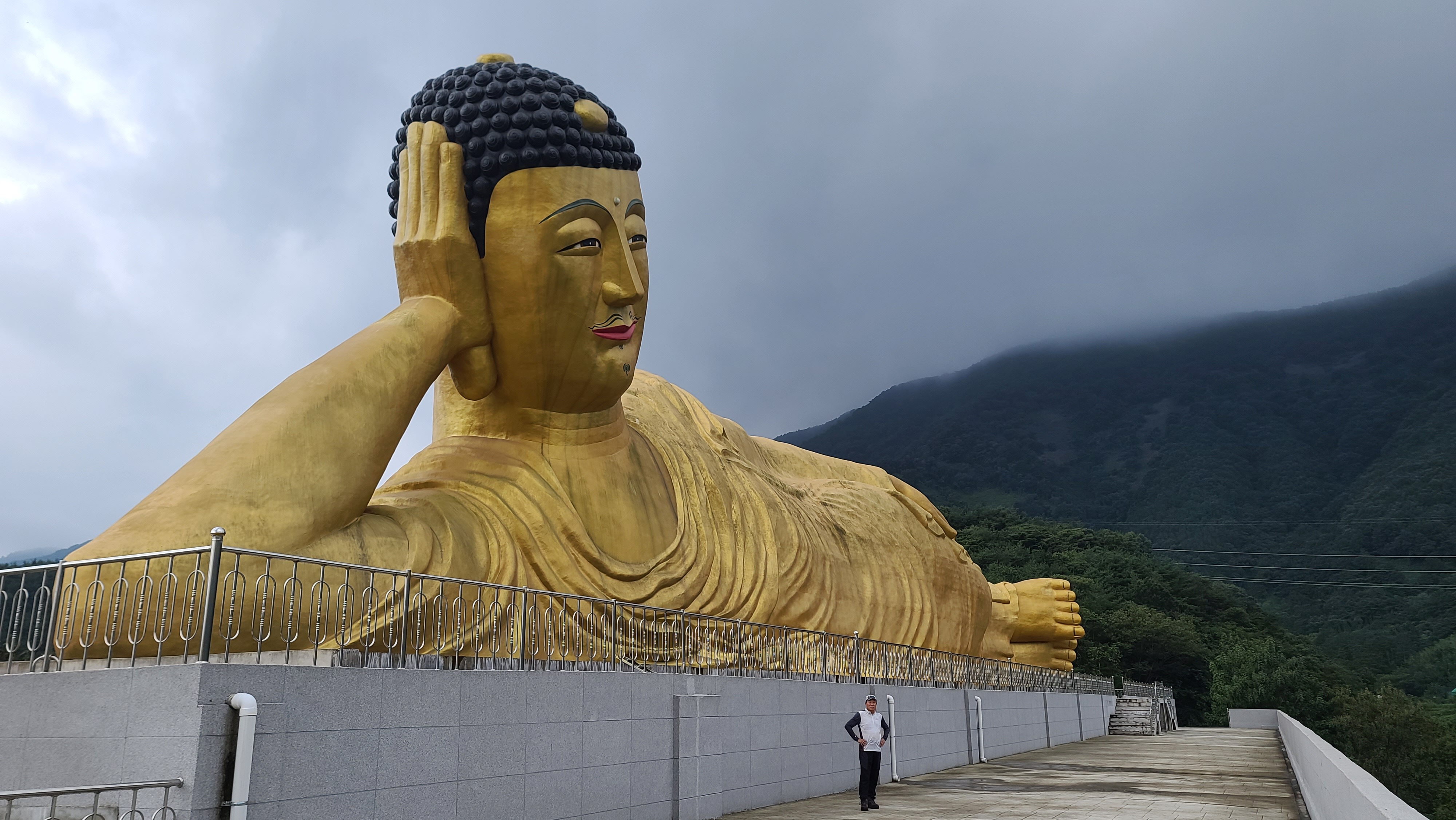 밀양시 무안면 가례리 영산정사 의 세계최대 와불 은 좌대길이:120 m 불상길이:82 m 불상높이:21m 제작금액 100억으로 21년 부처님 오신날에 개방 =>가례리 는 사명대사 의 출생지 입니다. (영취산이나 불교용어 영축산.취.축.한자어 같은용어) 누구와:이대장과두리