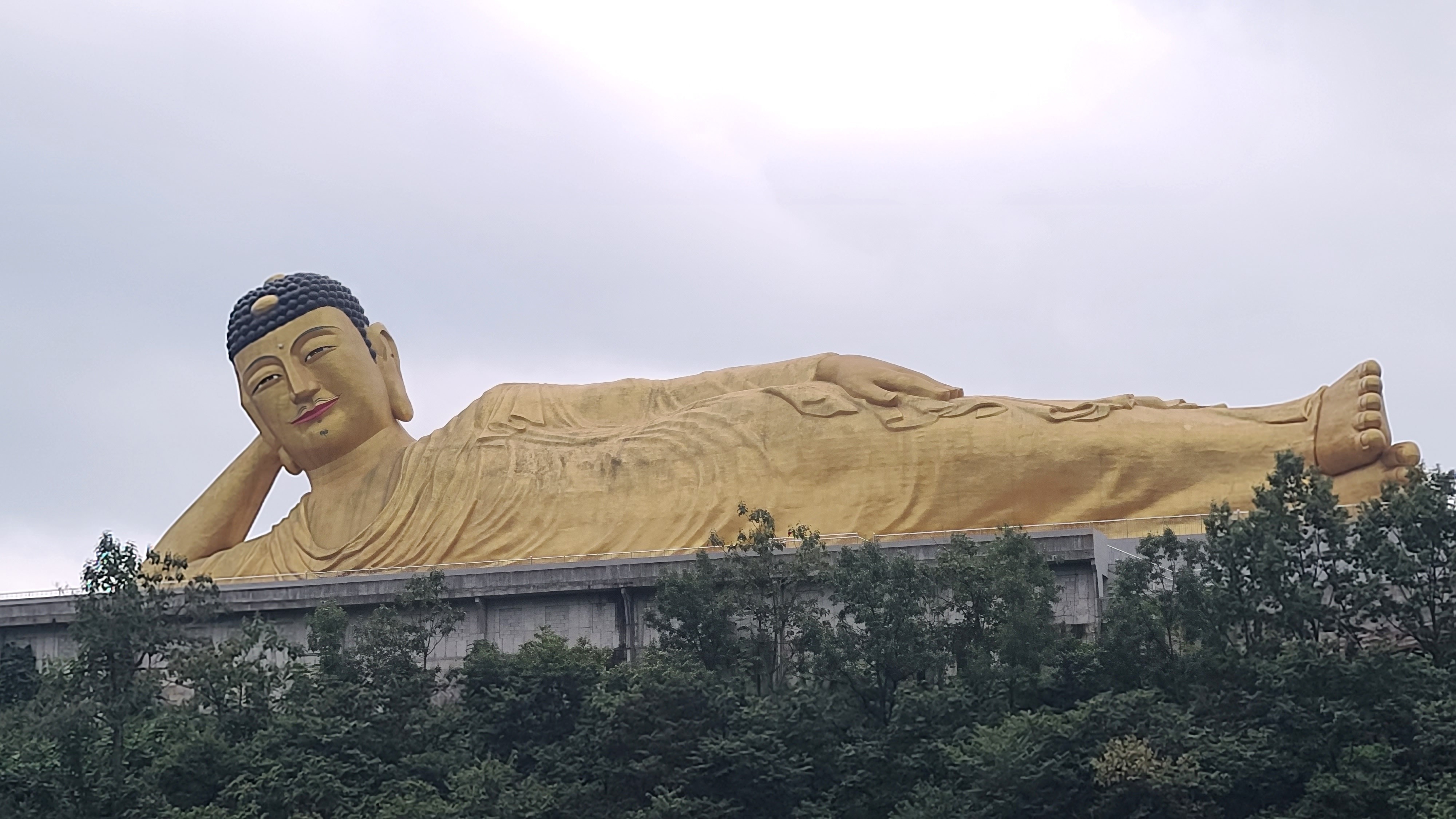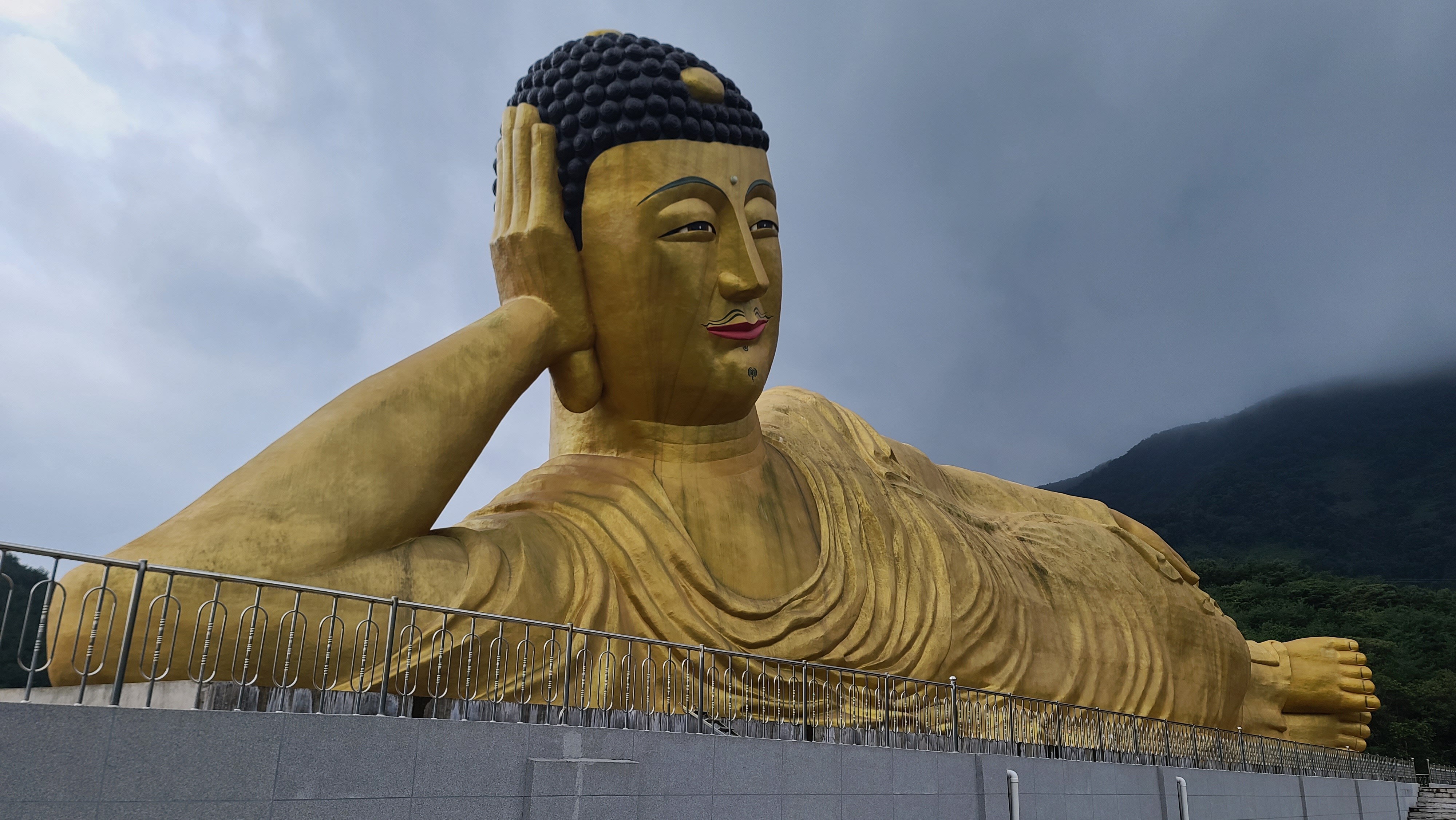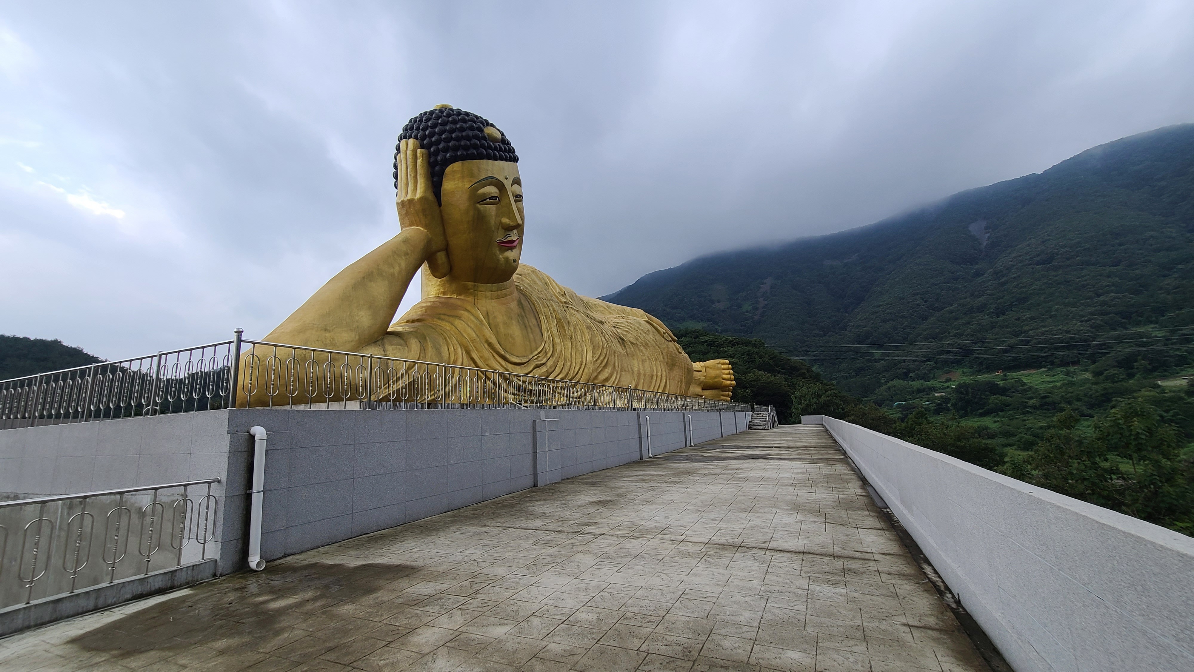 밀양시 무안면 가례리 영산정사 의 세계최대 와불 은 좌대길이:120 m 불상길이:82 m 불상높이:21m 제작금액 100억으로 21년 부처님 오신날에 개방 =>가례리 는 사명대사 의 출생지 입니다. (영취산이나 불교용어 영축산.취.축.한자어 같은용어) 누구와:이대장과두리