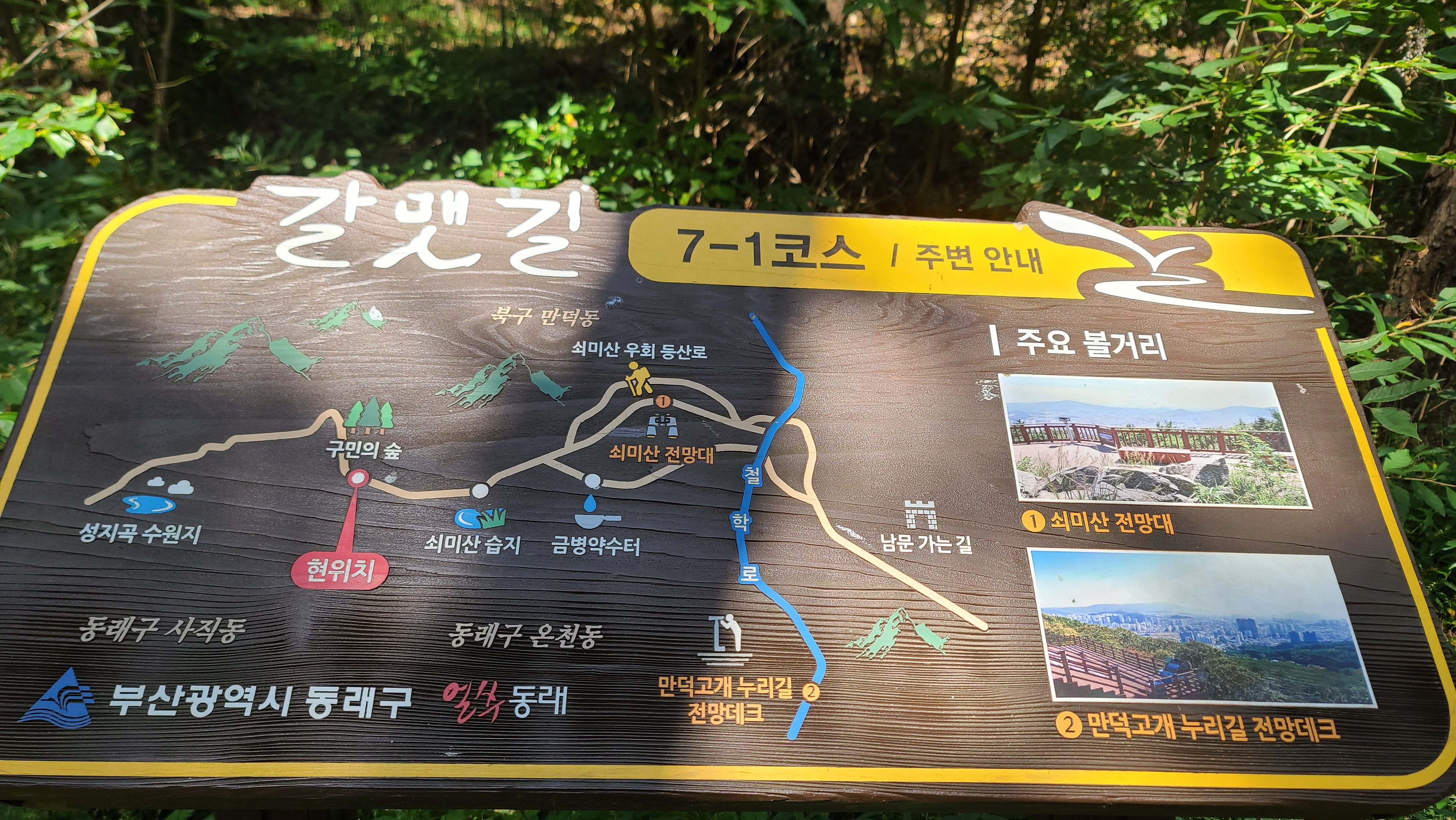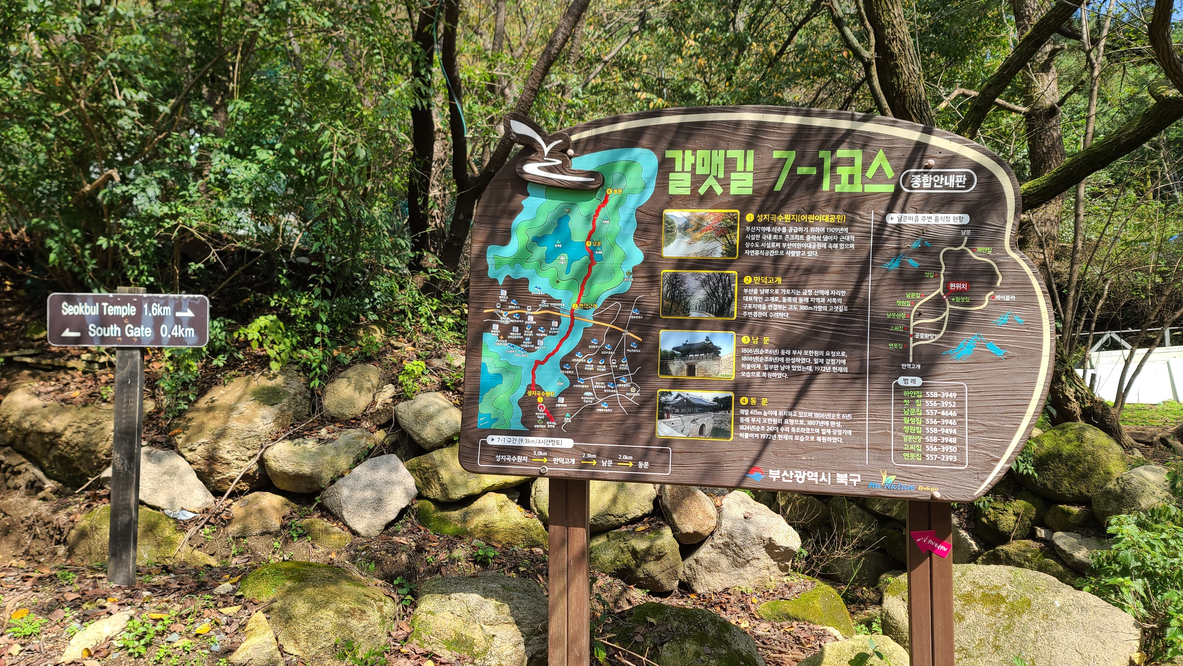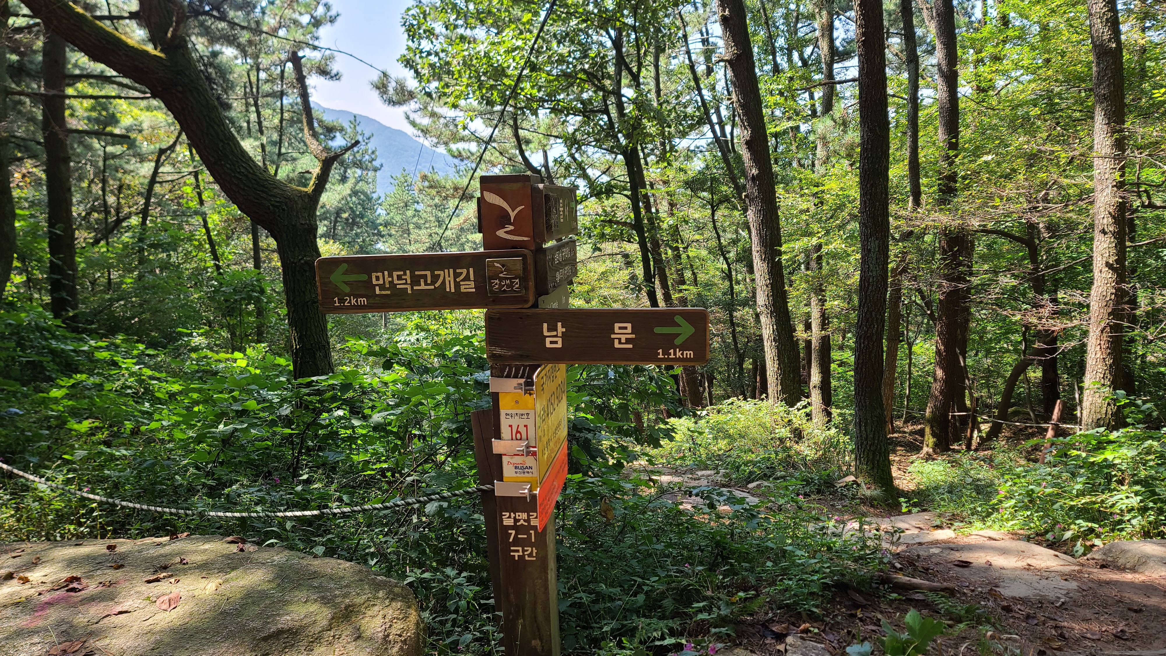 산행코스:선암사(백양산)=>바람고개(공룡발자국 삼거리)=>갈멧길6구간=>만남의광장(만남의 숲)=>갈멧길7-1구간=>만덕고개=>남문마을=>남문=>휴정암=>케이블카=>금강공원 산행거리:13.2km 산행시간:4시간50분소요