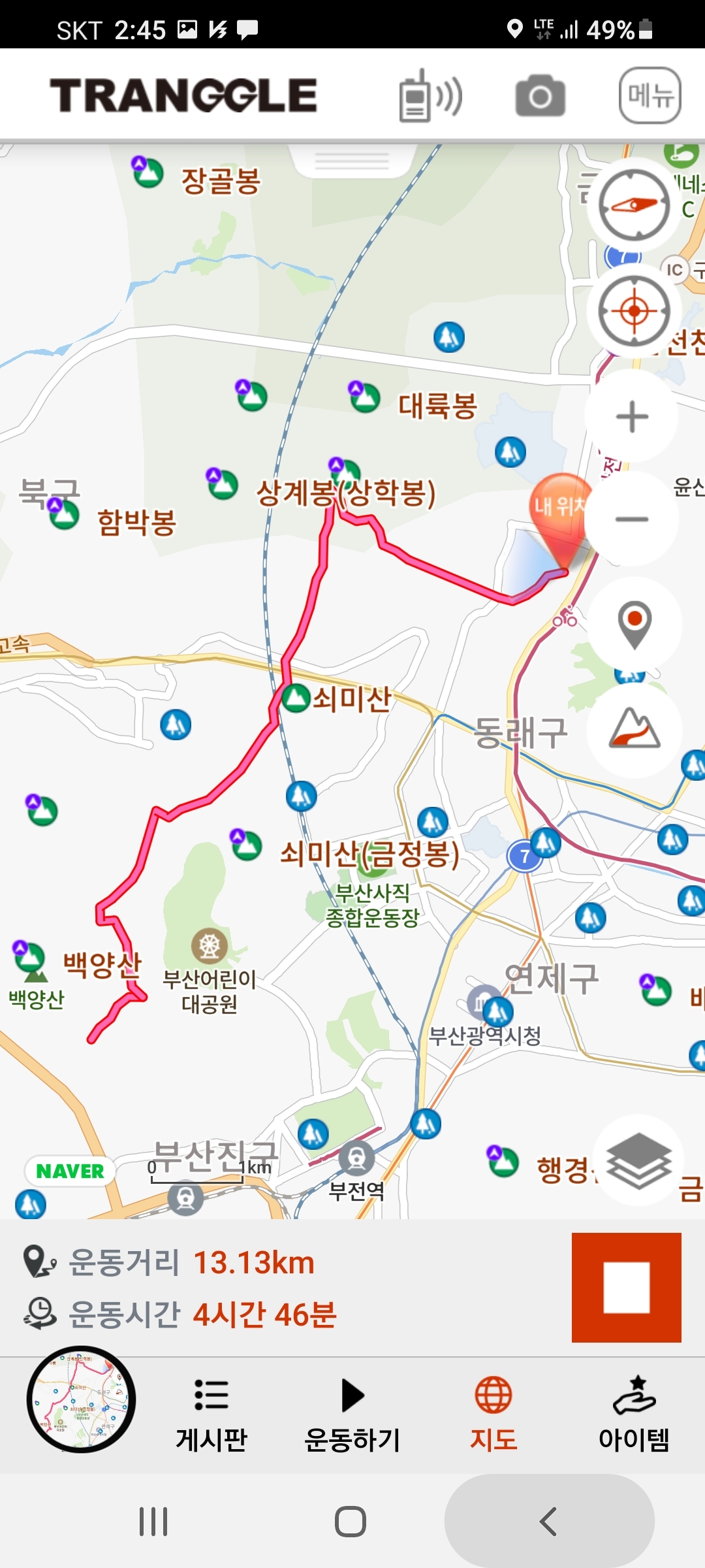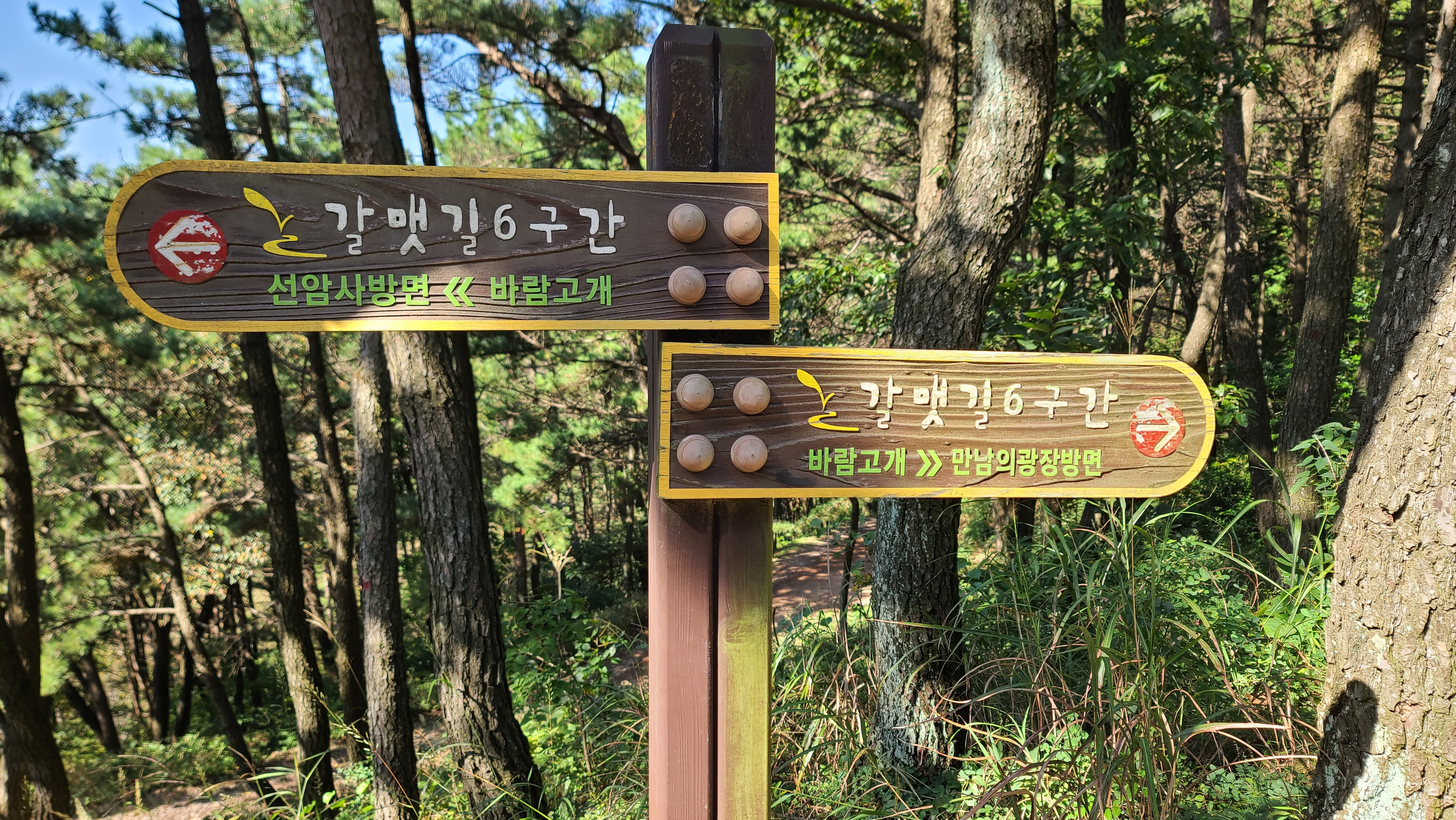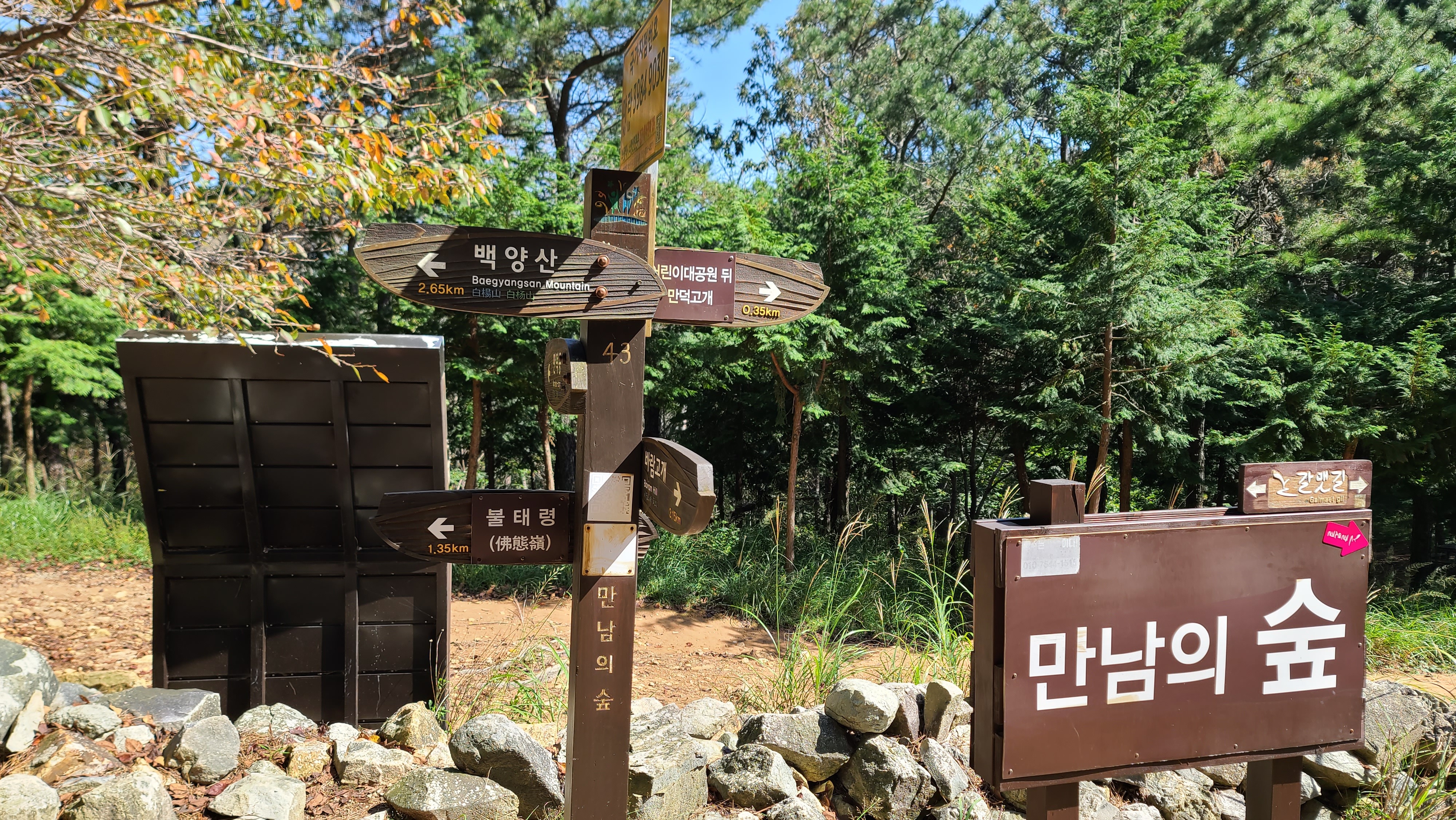 산행코스:선암사(백양산)=>바람고개(공룡발자국 삼거리)=>갈멧길6구간=>만남의광장(만남의 숲)=>갈멧길7-1구간=>만덕고개=>남문마을=>남문=>휴정암=>케이블카=>금강공원 산행거리:13.2km 산행시간:4시간50분소요