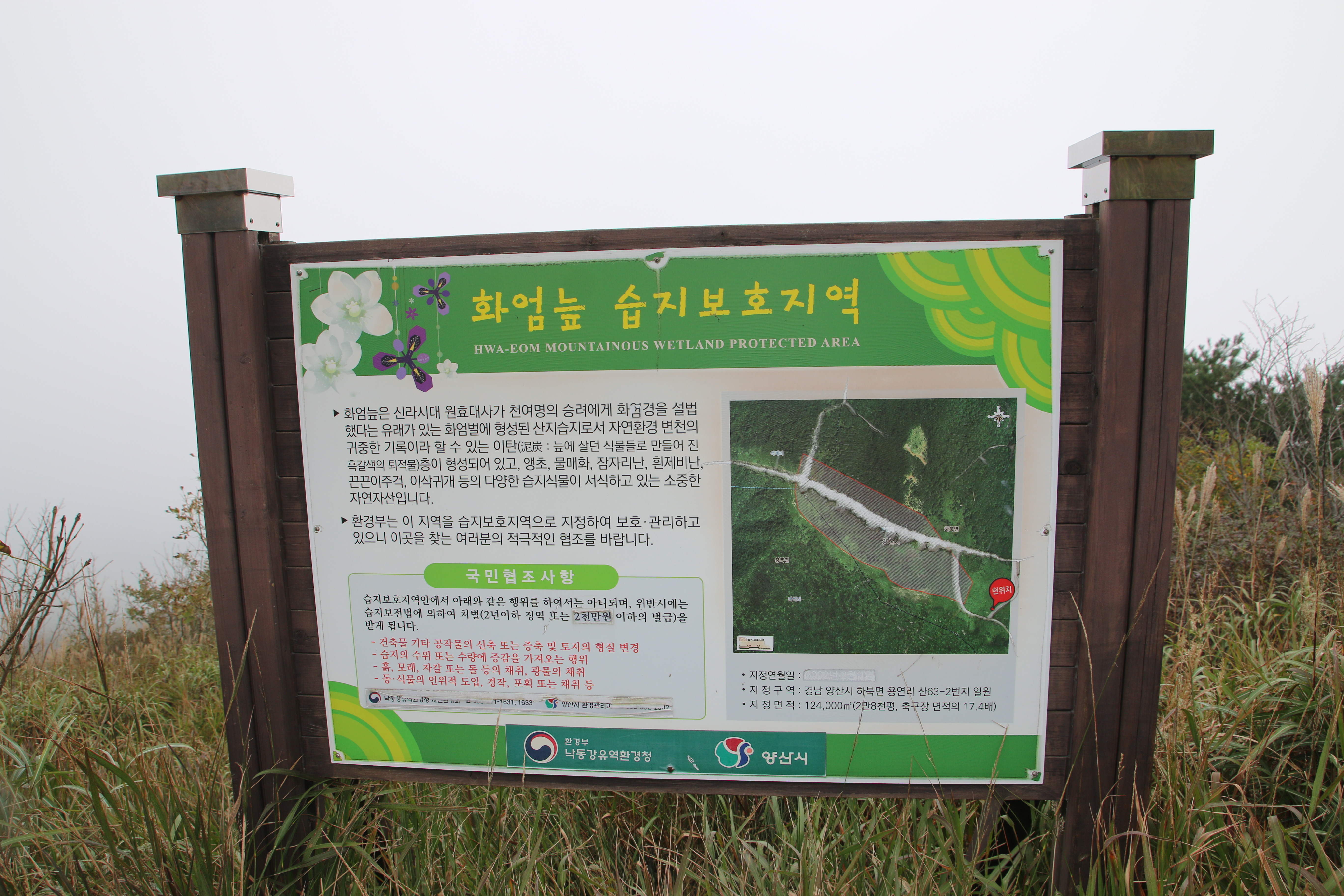 산행코스:원효암주차장=>천성산1.2.봉삼거리=>주능선(은수고개.1봉삼거리)=>화엄늪(옛길)=>천성산1봉.화엄늪(삼거리)=>억새굴락지=>천성산1봉.원효암삼거리=>원효암=>원효암주차장 산행거리:5.3km 산행시간:1시간40분