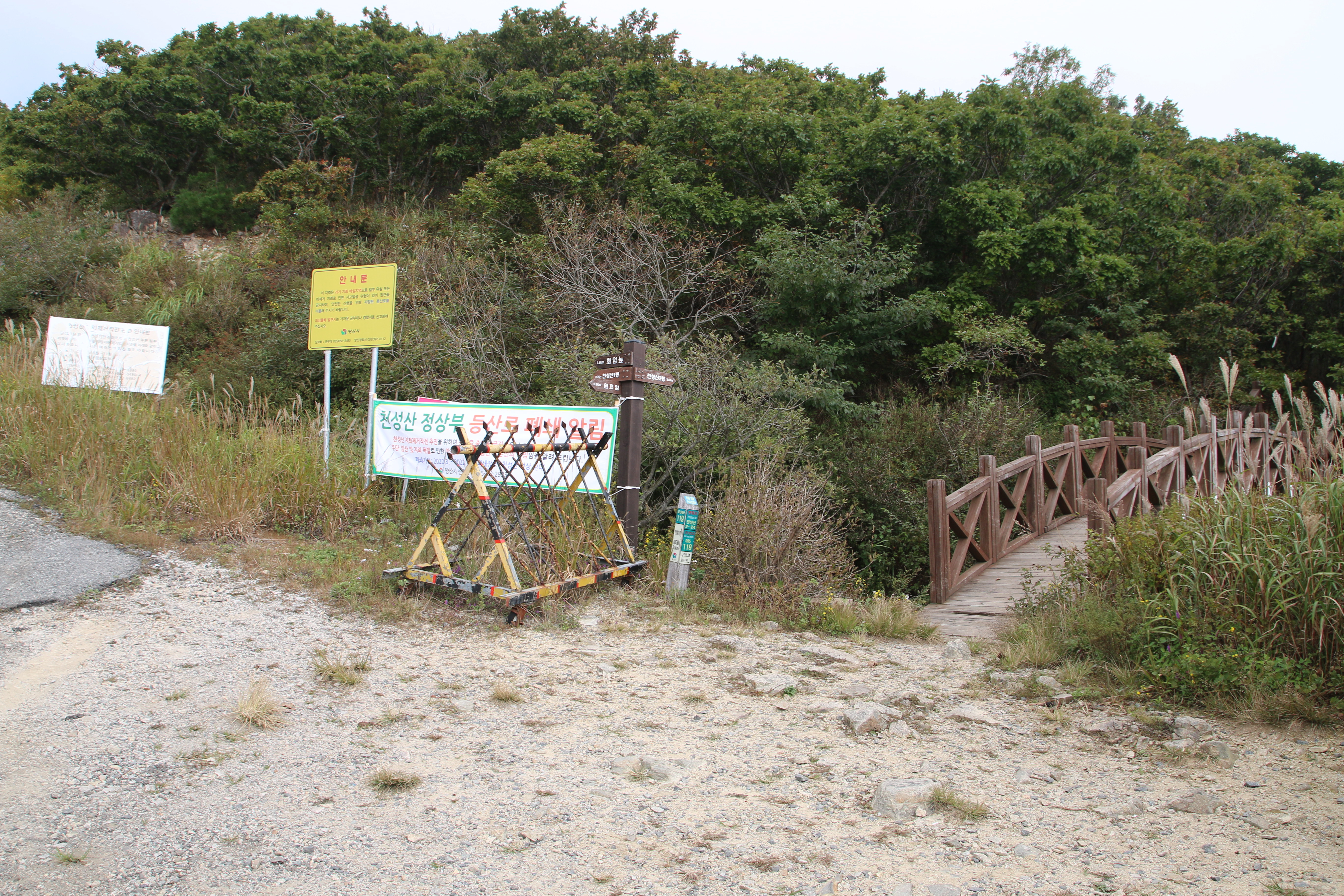 안내:2020년부터 천성상 부 산행불가 2021년 1월잠시개방 하다 21년3월부터 2022년12월까지 (2차작업)정상 어느방향도 개방하지않음(옛길이용)2봉방향으로 갈수있씀 (내용. 지뢰 수거 작업)