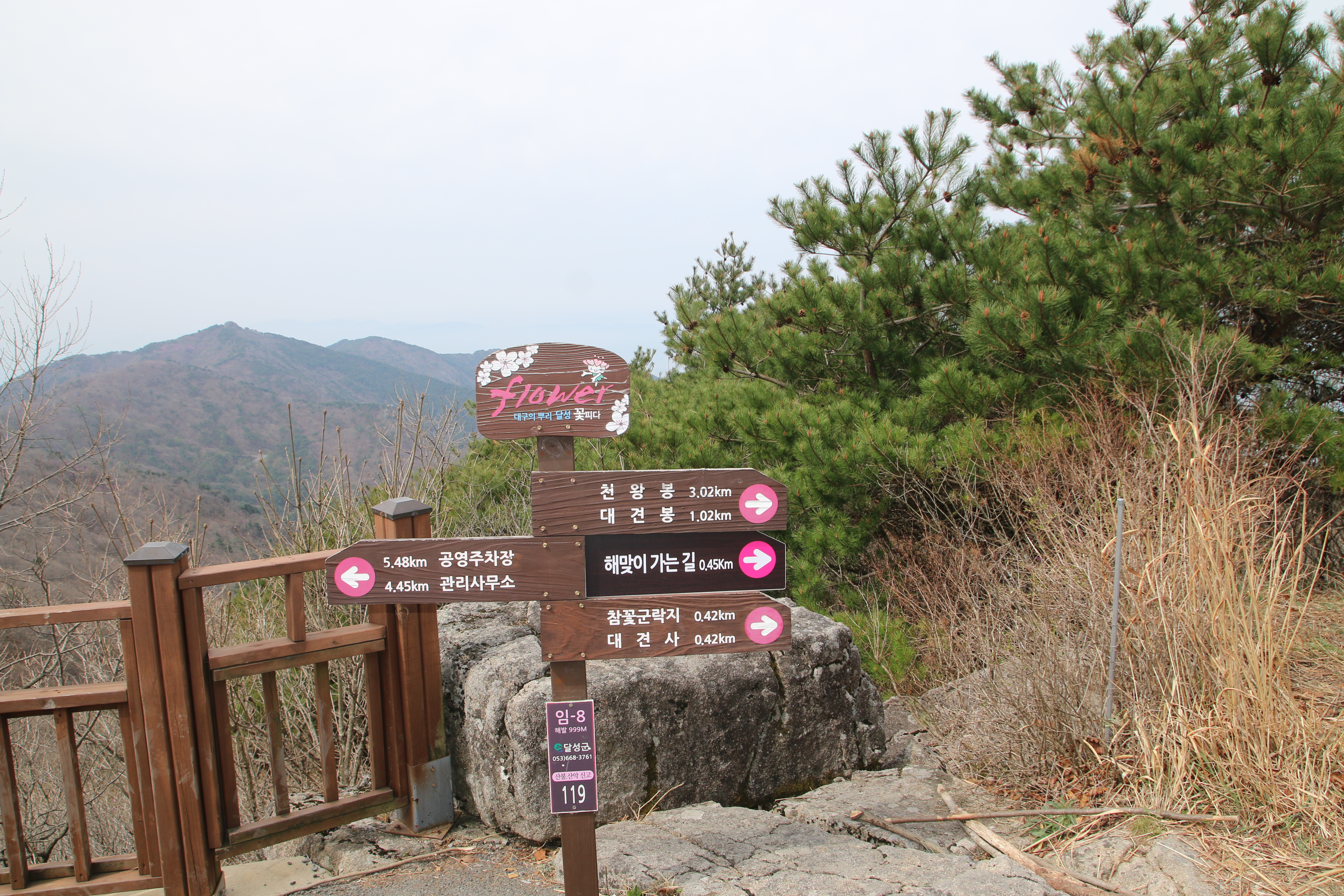 비슬산주차장=>셔틀버스=>위주차장=>대견사=>참꽃굴락지=>대견봉(1035m)=>대견사=셔틀버스=>비슬산주차장