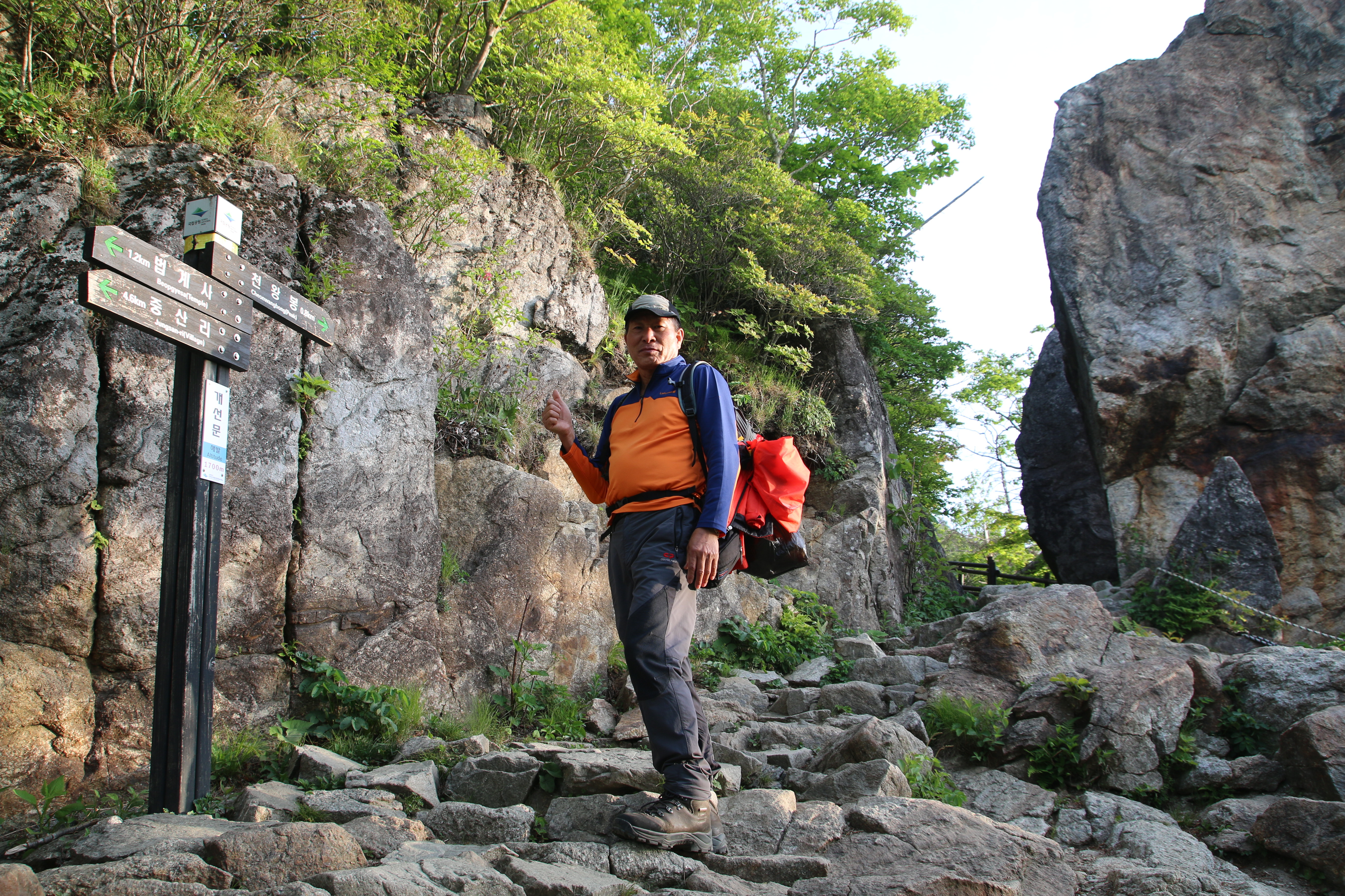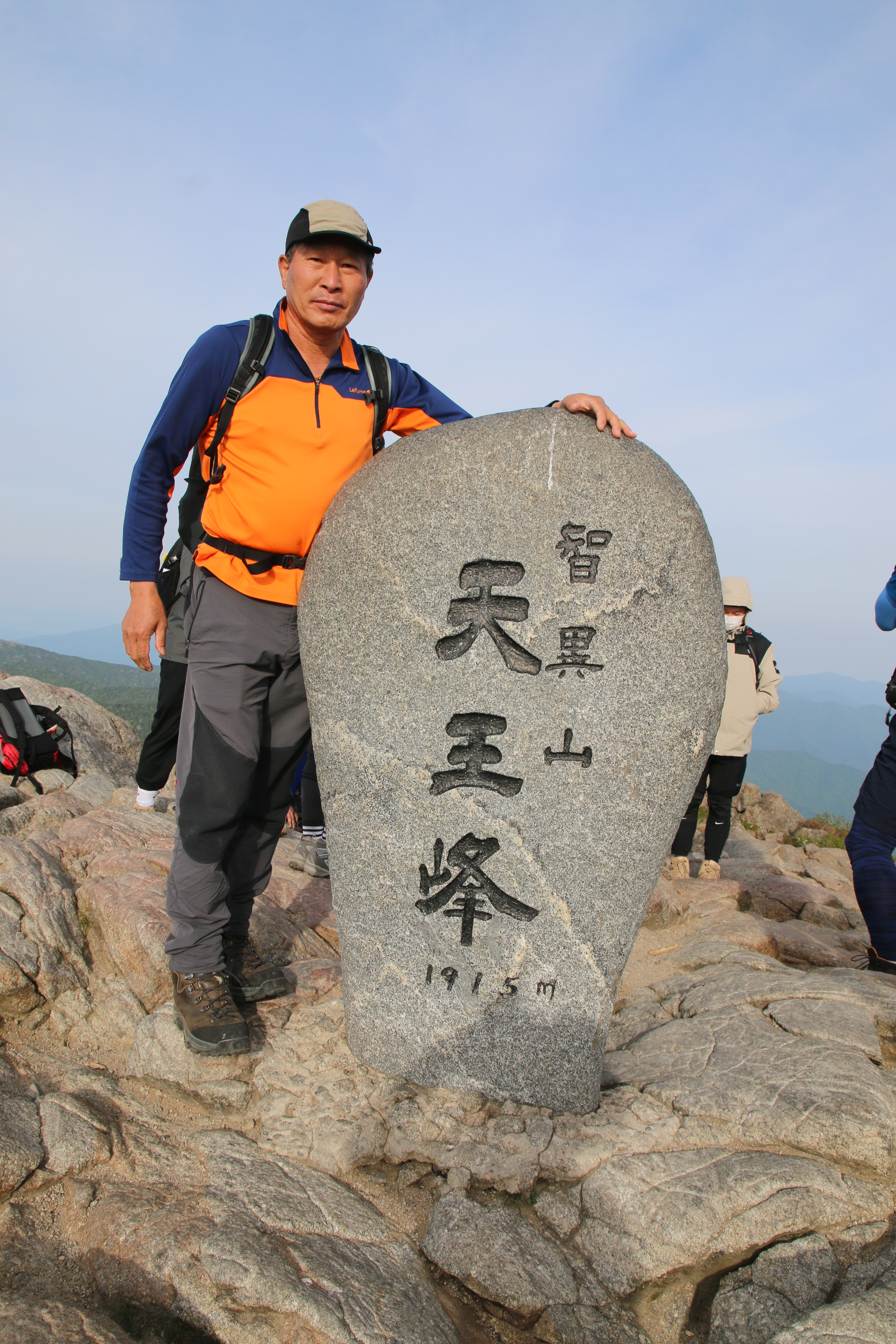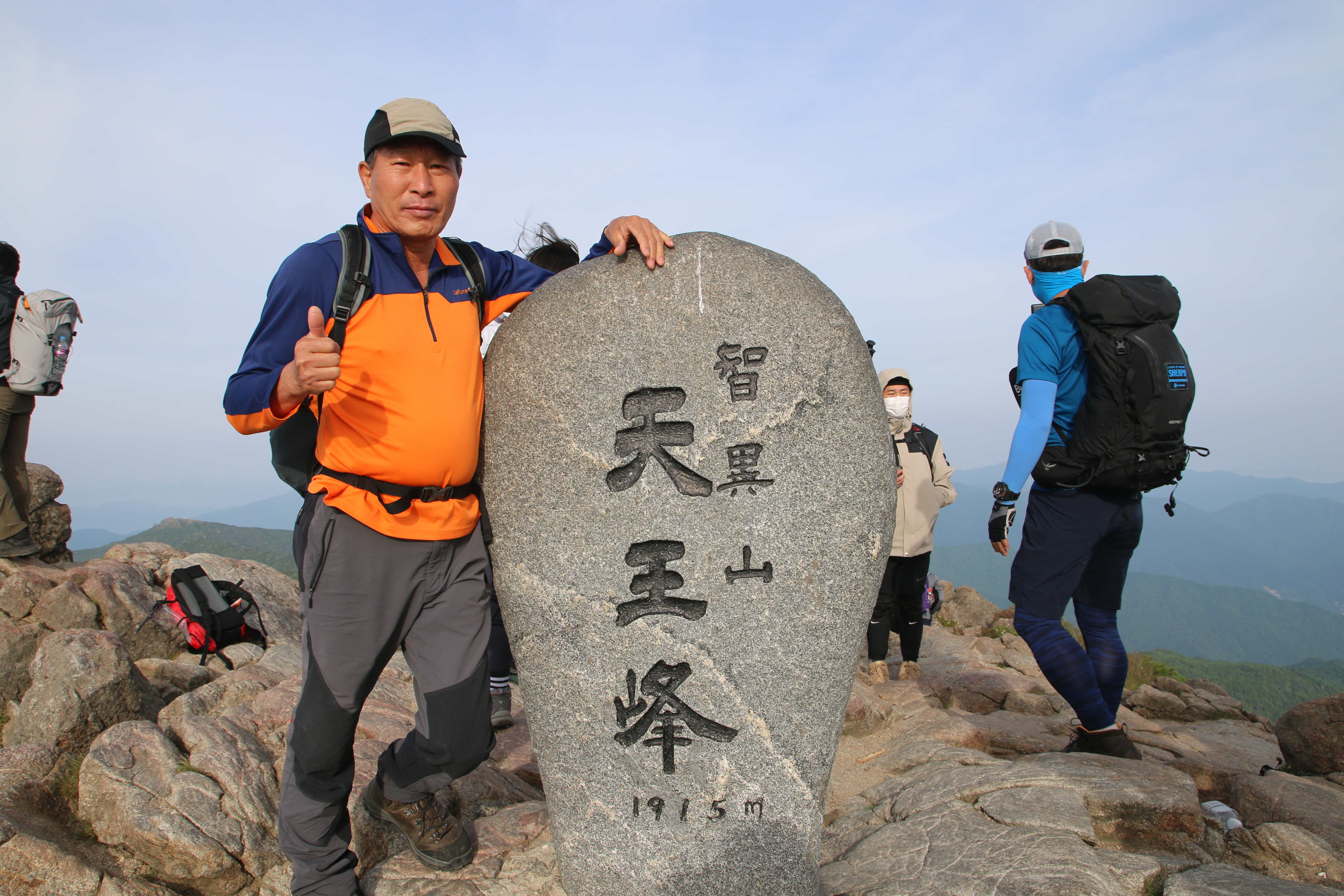 등산코스: 중산리 위주차장=>중산리 탐방지원센터=>중산리 야영장=>칼바위=>망바위=>법계사=>천왕샘=>천왕봉(1915m)=>=>통천문=>제석봉=>장터목대피소=>유암폭포=>칼바위=>중산리 야영장=>중산리 탐방지원센터 산행거리: 약14km 산행시간:9시간소요(휴식포함) 국립공원(블랙.한국.100대명산)