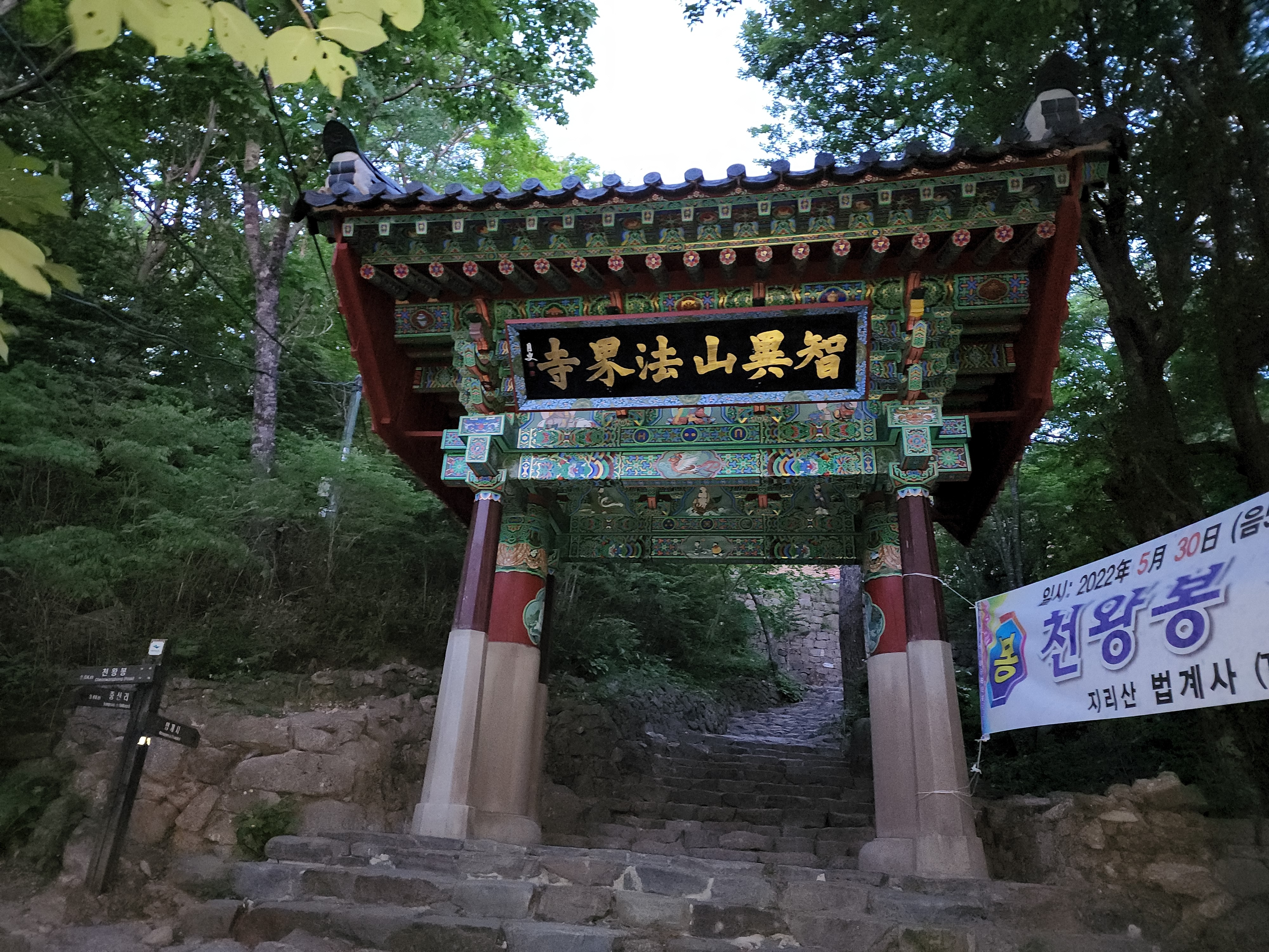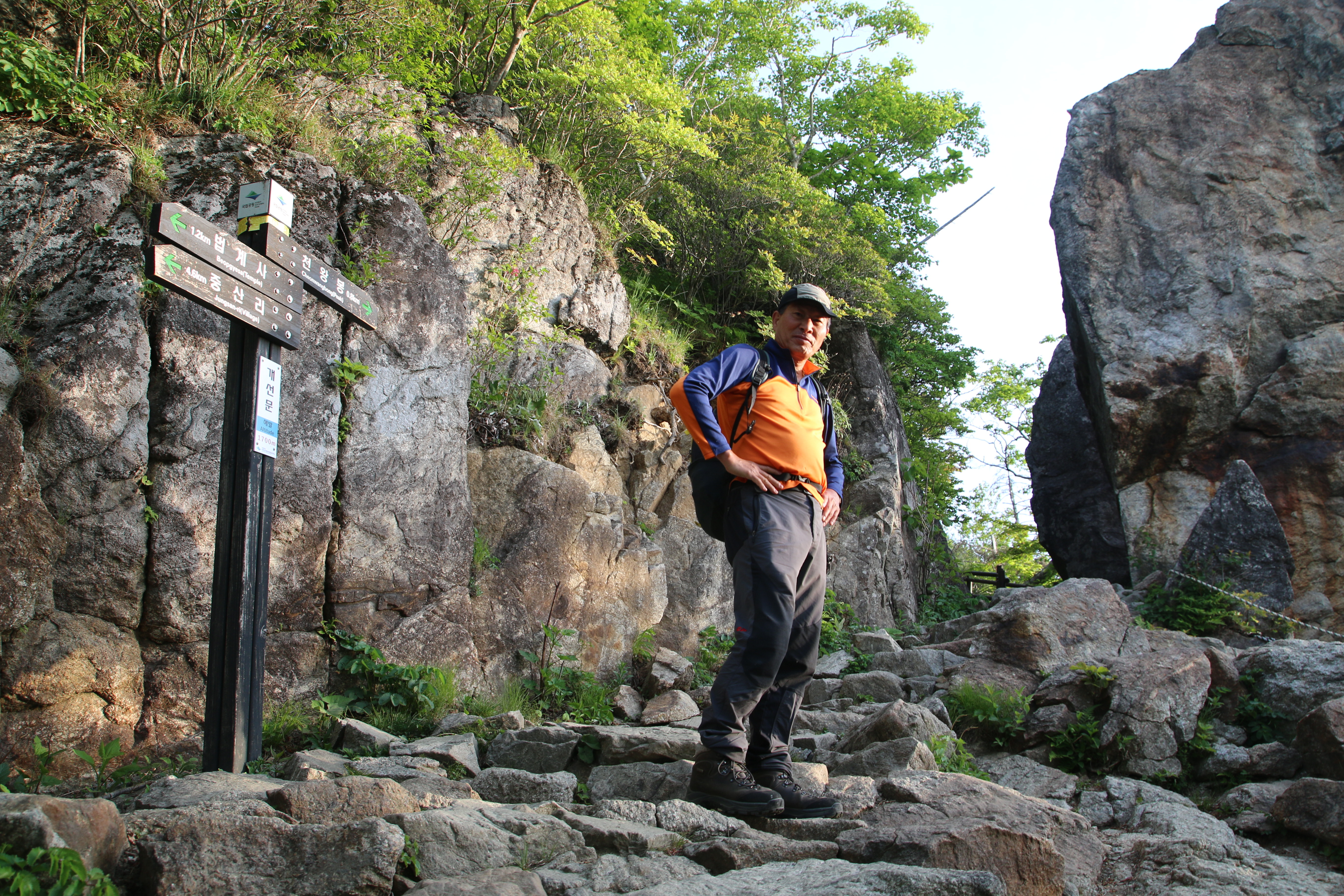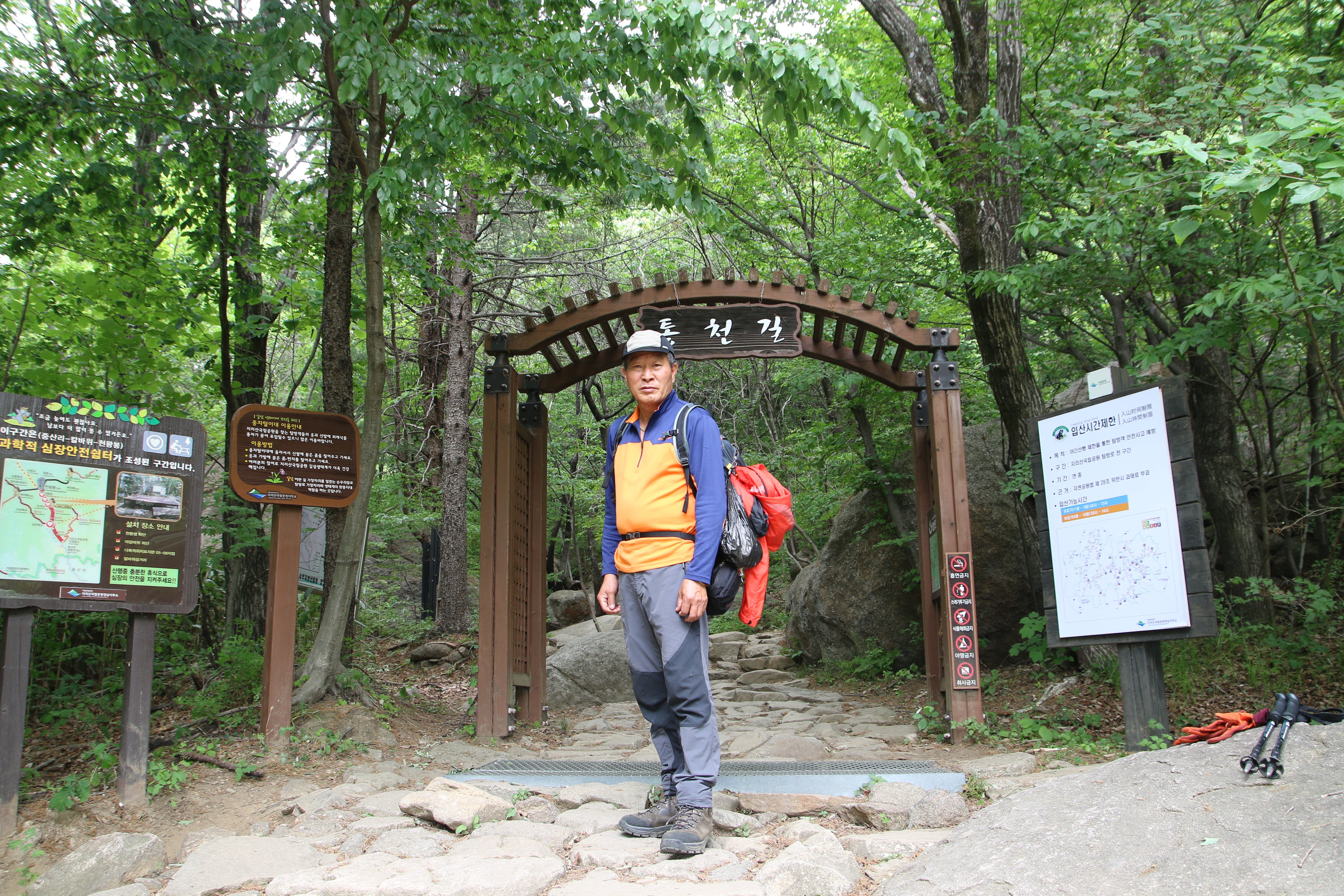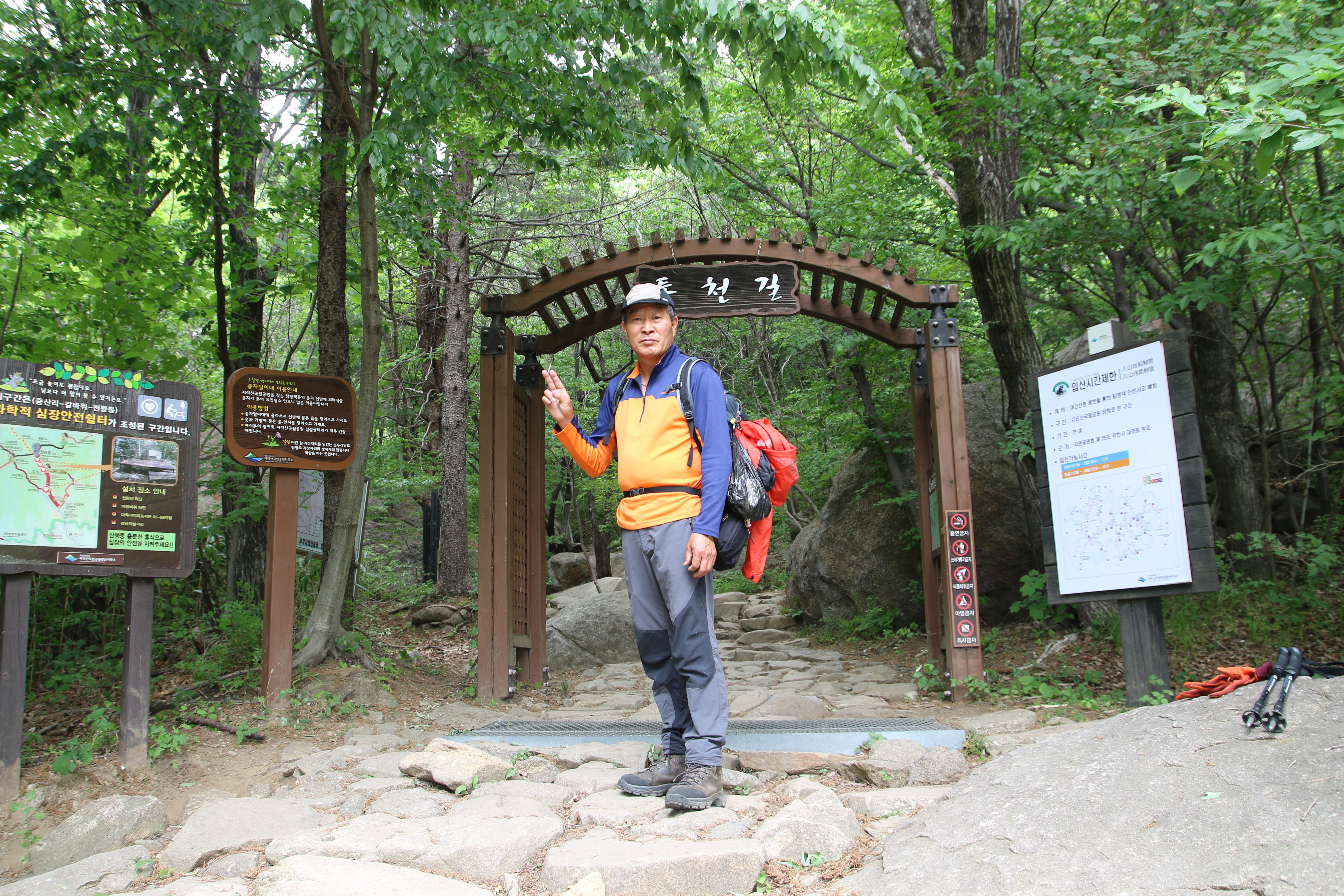 등산코스: 중산리 위주차장=>중산리 탐방지원센터=>중산리 야영장=>칼바위=>망바위=>법계사=>천왕샘=>천왕봉(1915m)=>=>통천문=>제석봉=>장터목대피소=>유암폭포=>칼바위=>중산리 야영장=>중산리 탐방지원센터 산행거리: 약14km 산행시간:9시간소요(휴식포함) 국립공원(블랙.한국.100대명산)