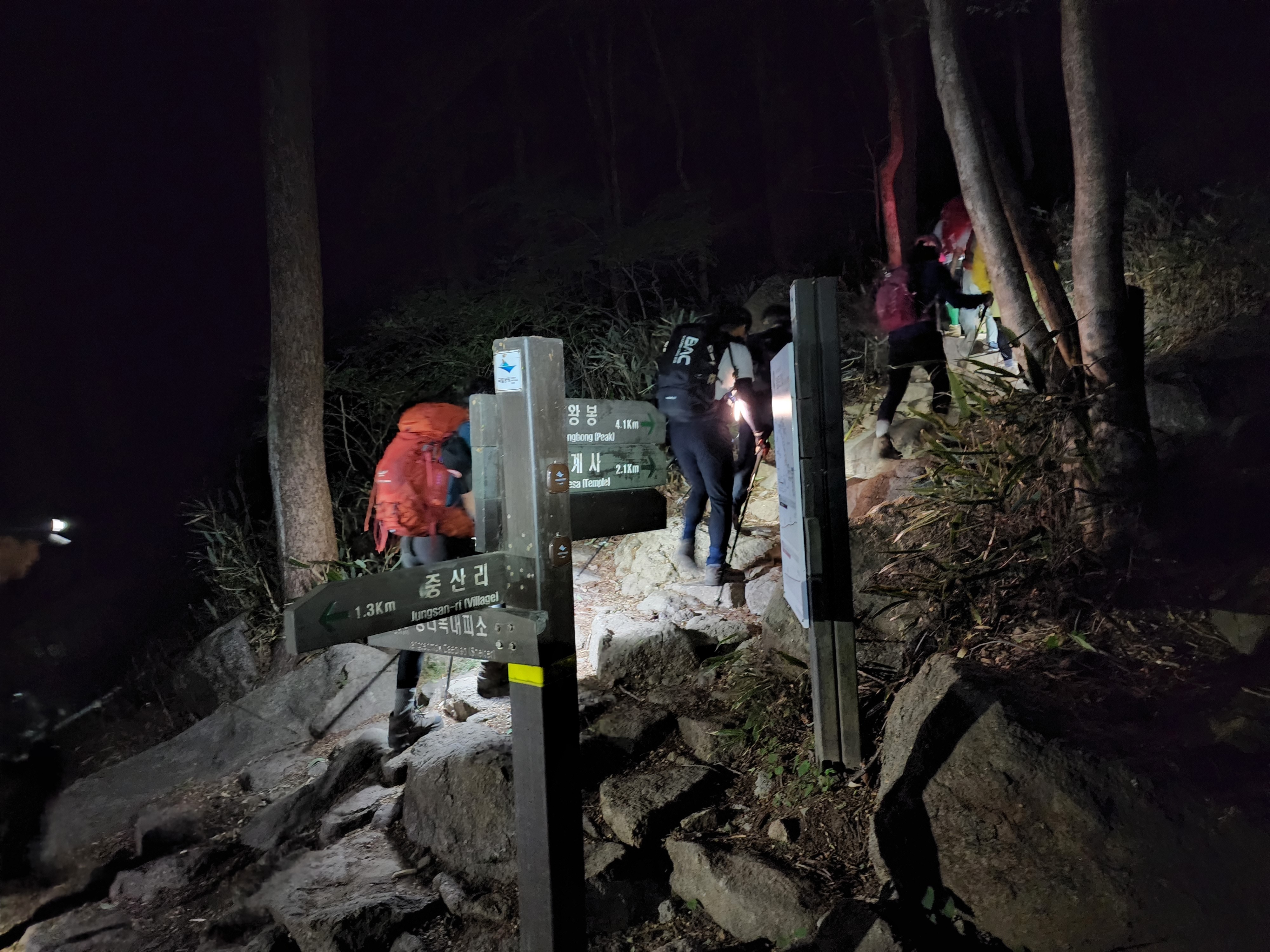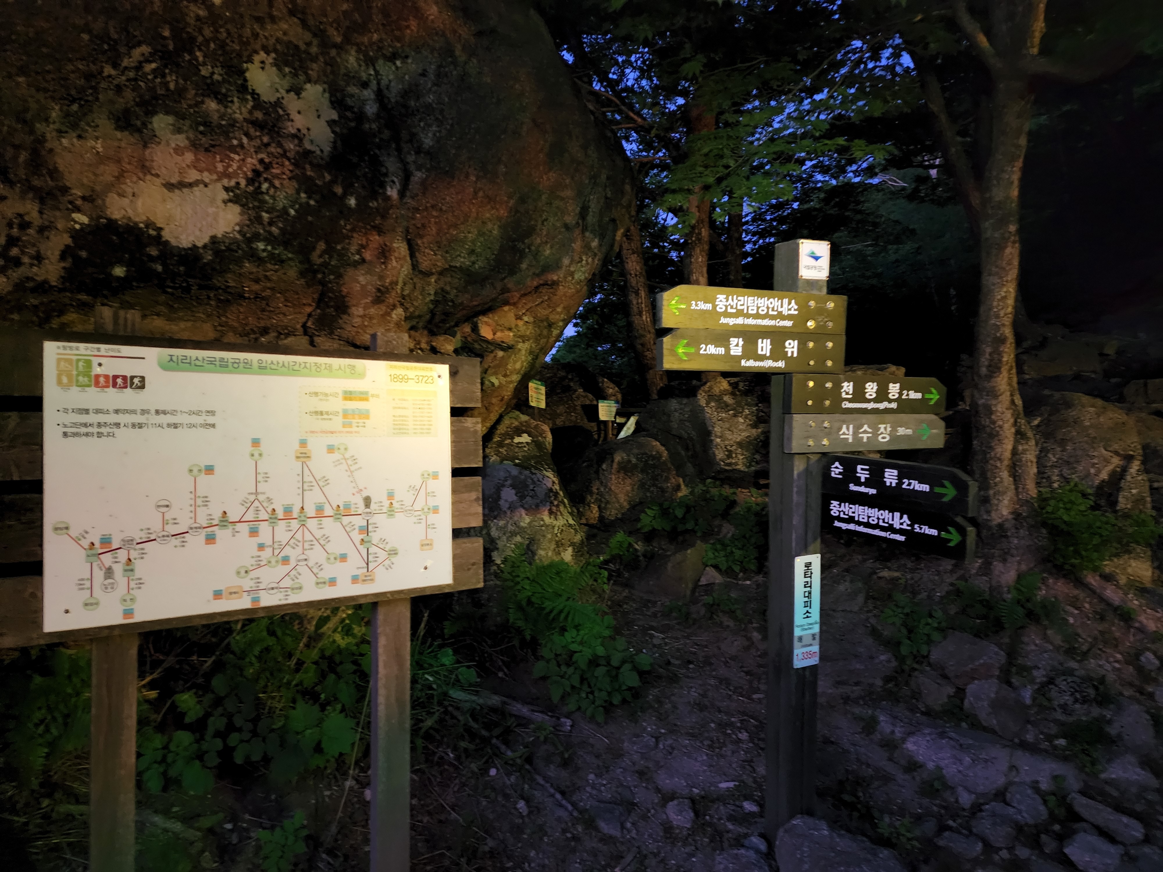 지리산 산행 부산에서27일pm11시출발 중산리 위주차장 28일am01시20분도착 03시부터 입산 1시간여 기다려 2시45분 입산
