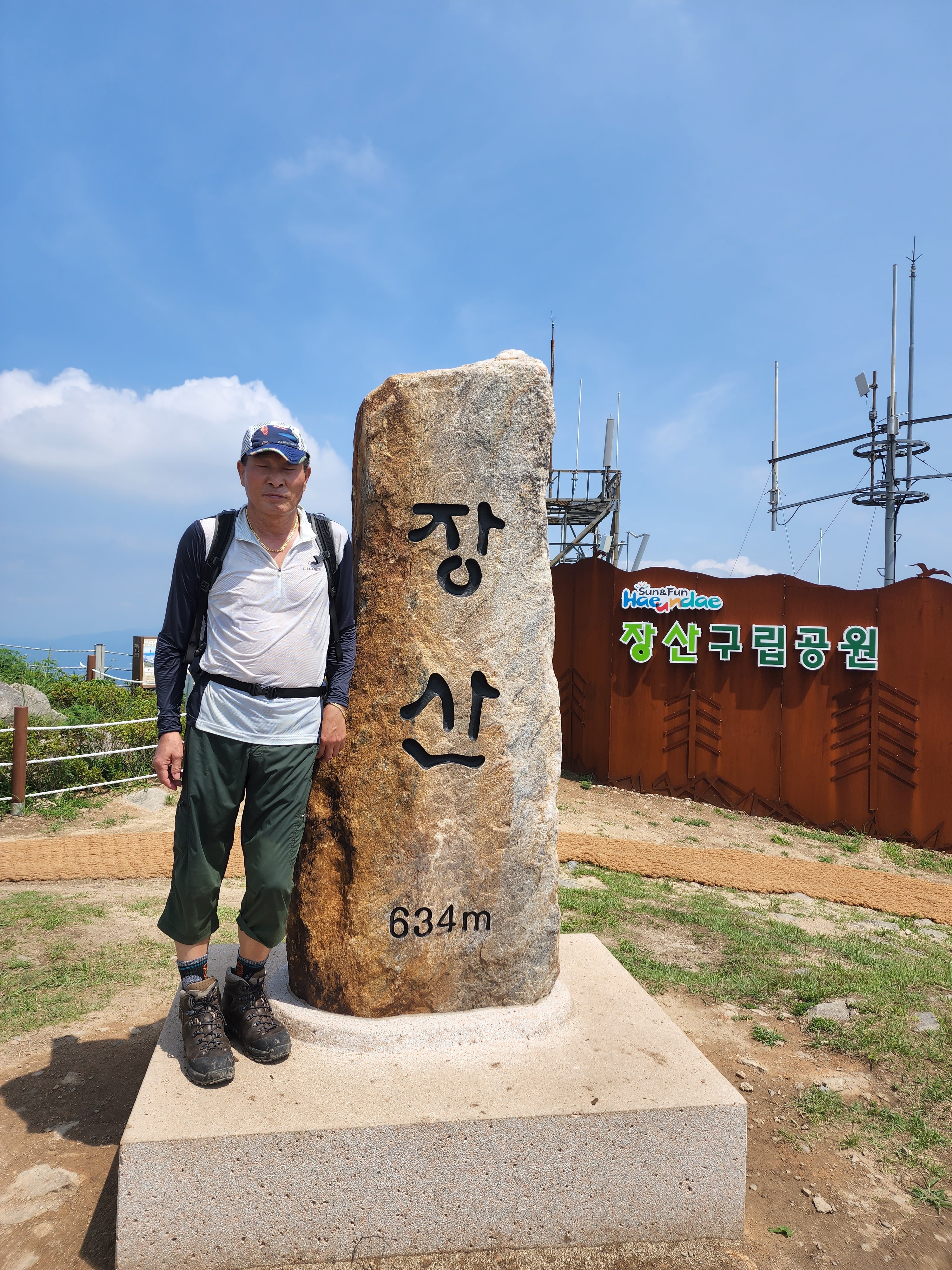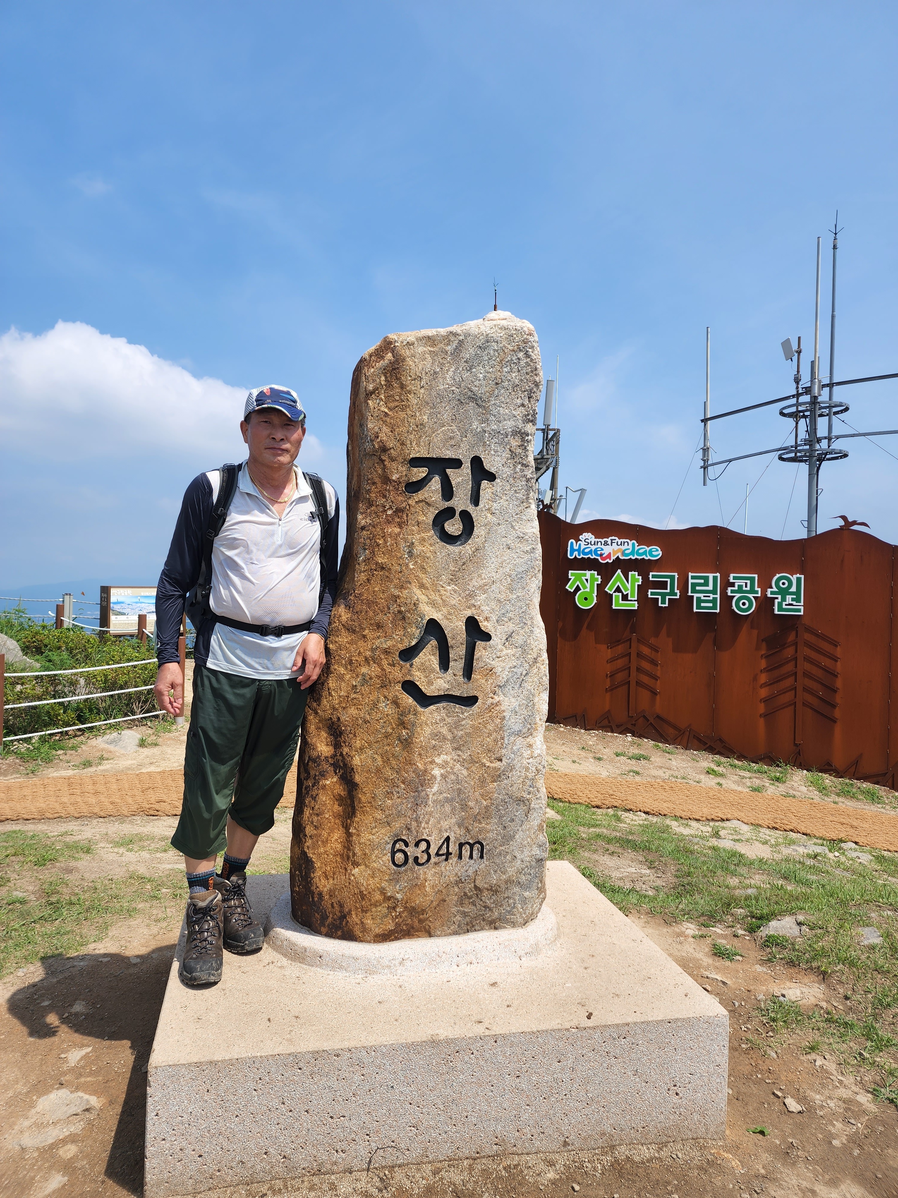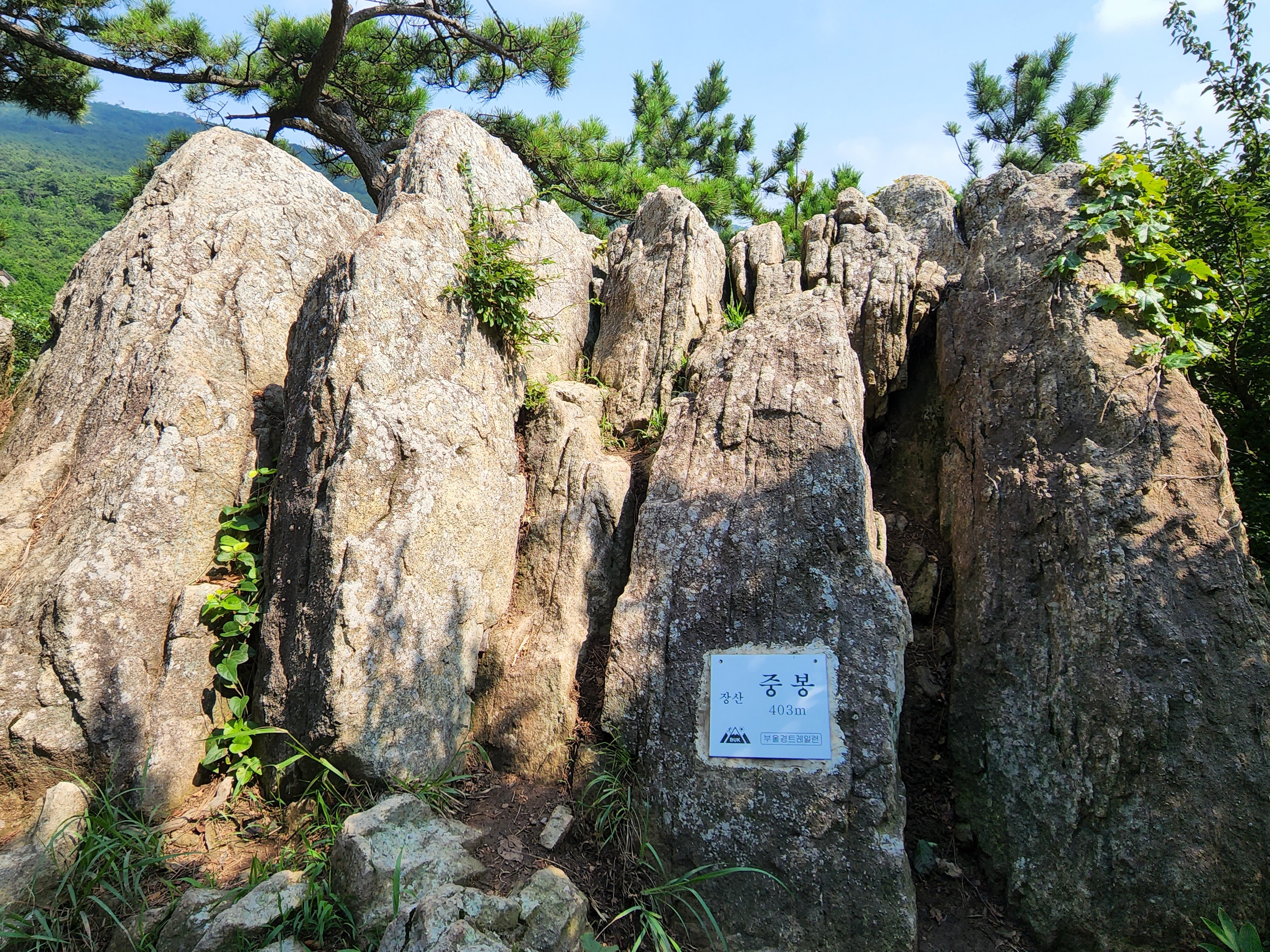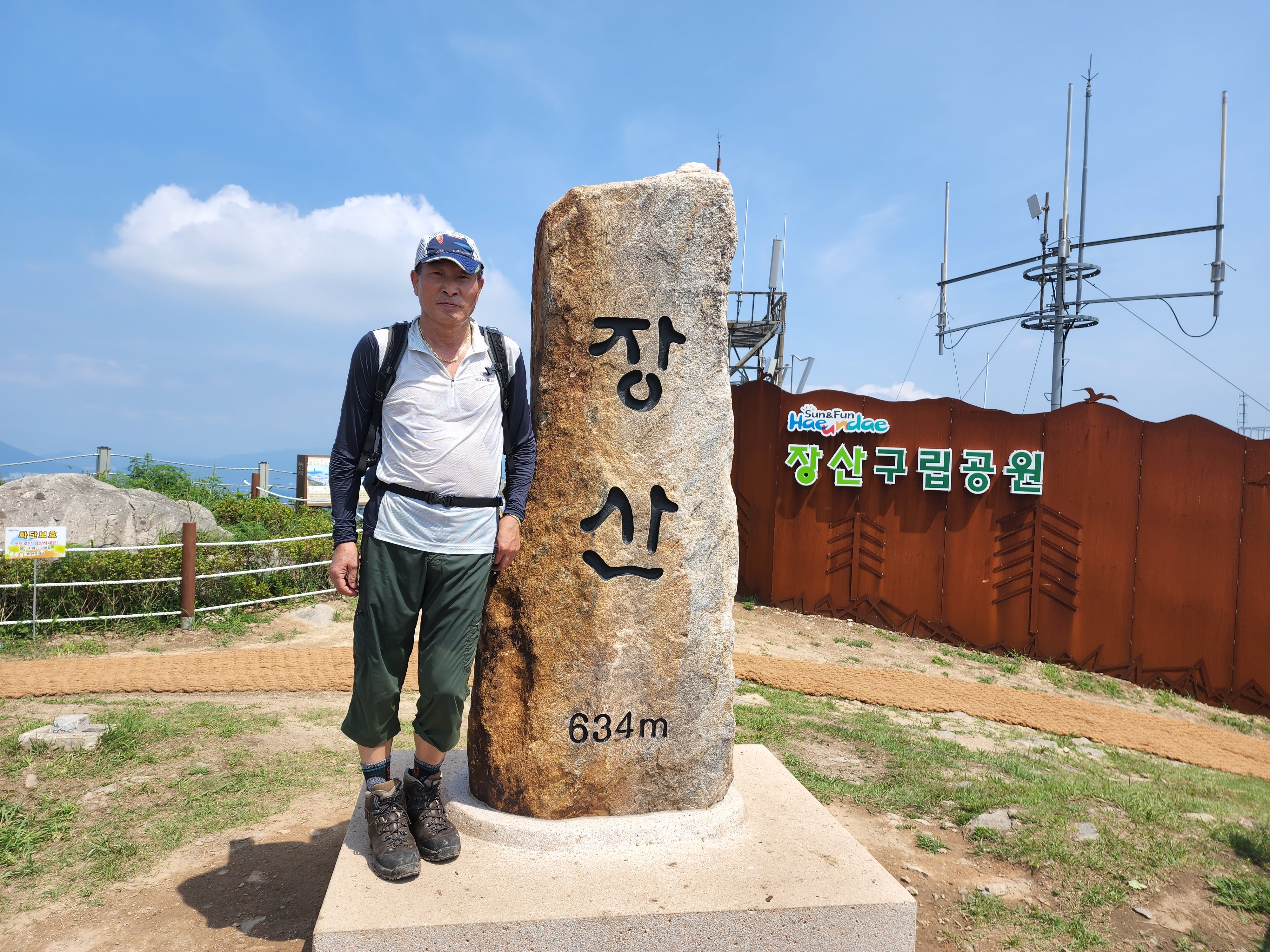 산행코스:동백역(2호선)4번출구=>반도보라담벽 우측(50m)=>장산들머리=>옥녀봉(383m)=>중봉(403m)=>구.정상석=>신.정상석(634m)=>구.정상석=>장군바위=>성불사.너덜길 갈림길=>임도=>성불사입구=>벡스코역6번출구