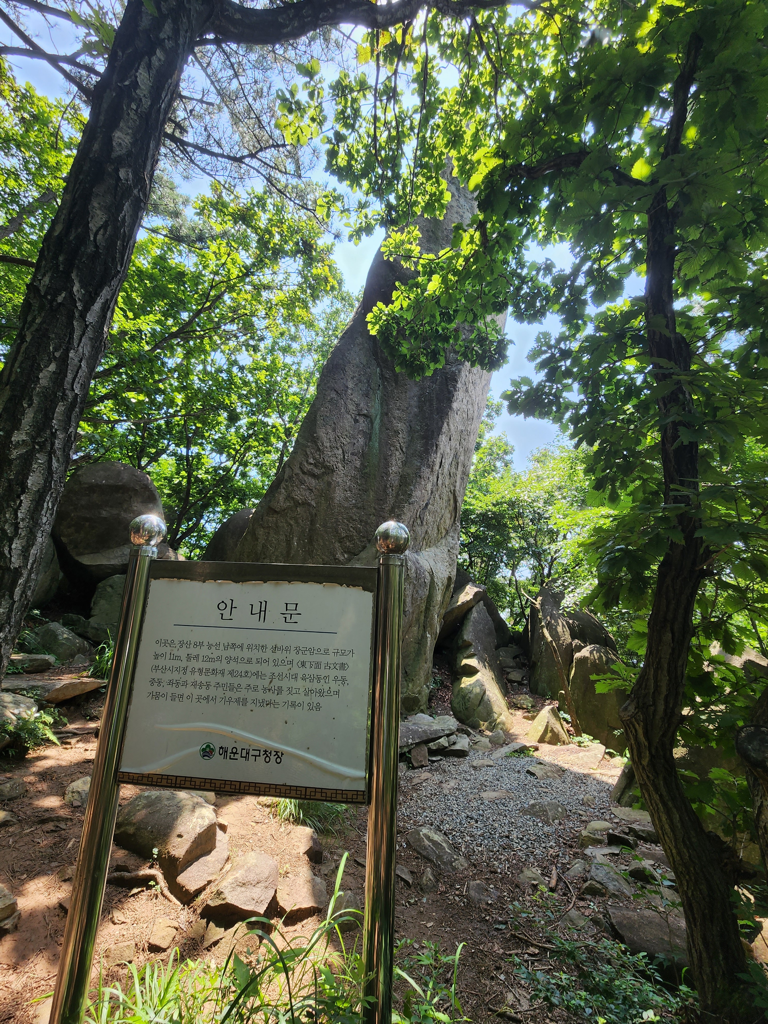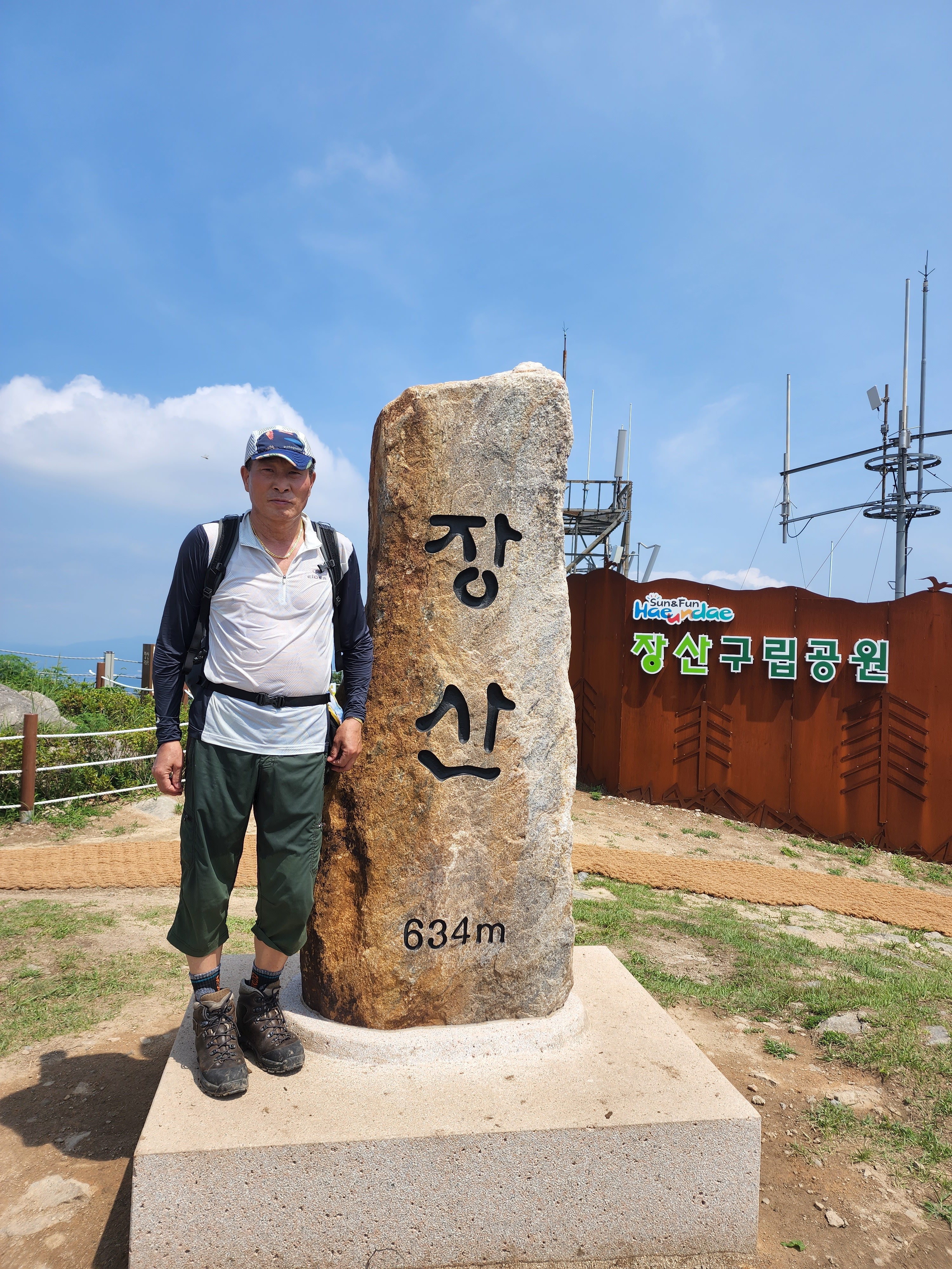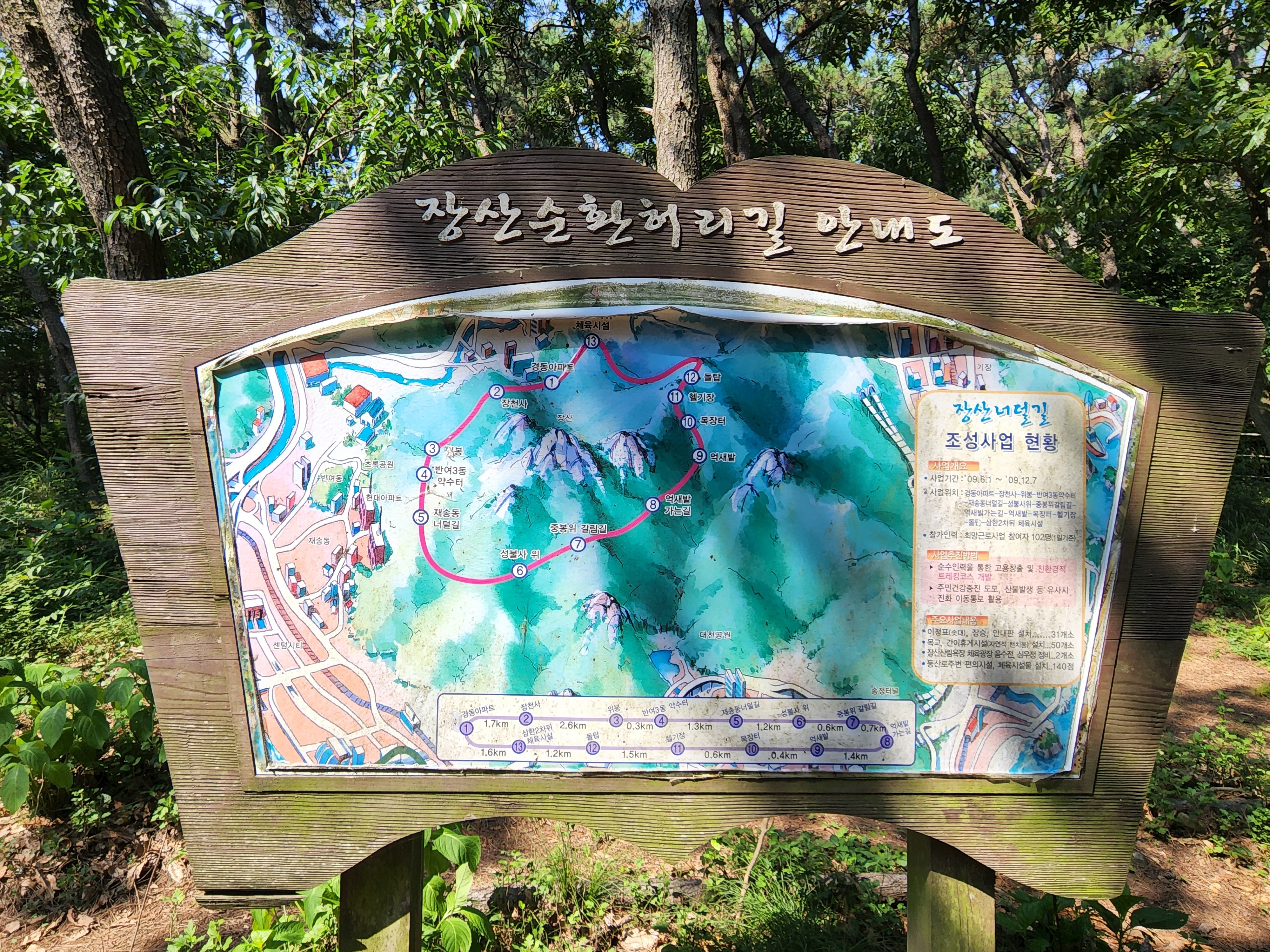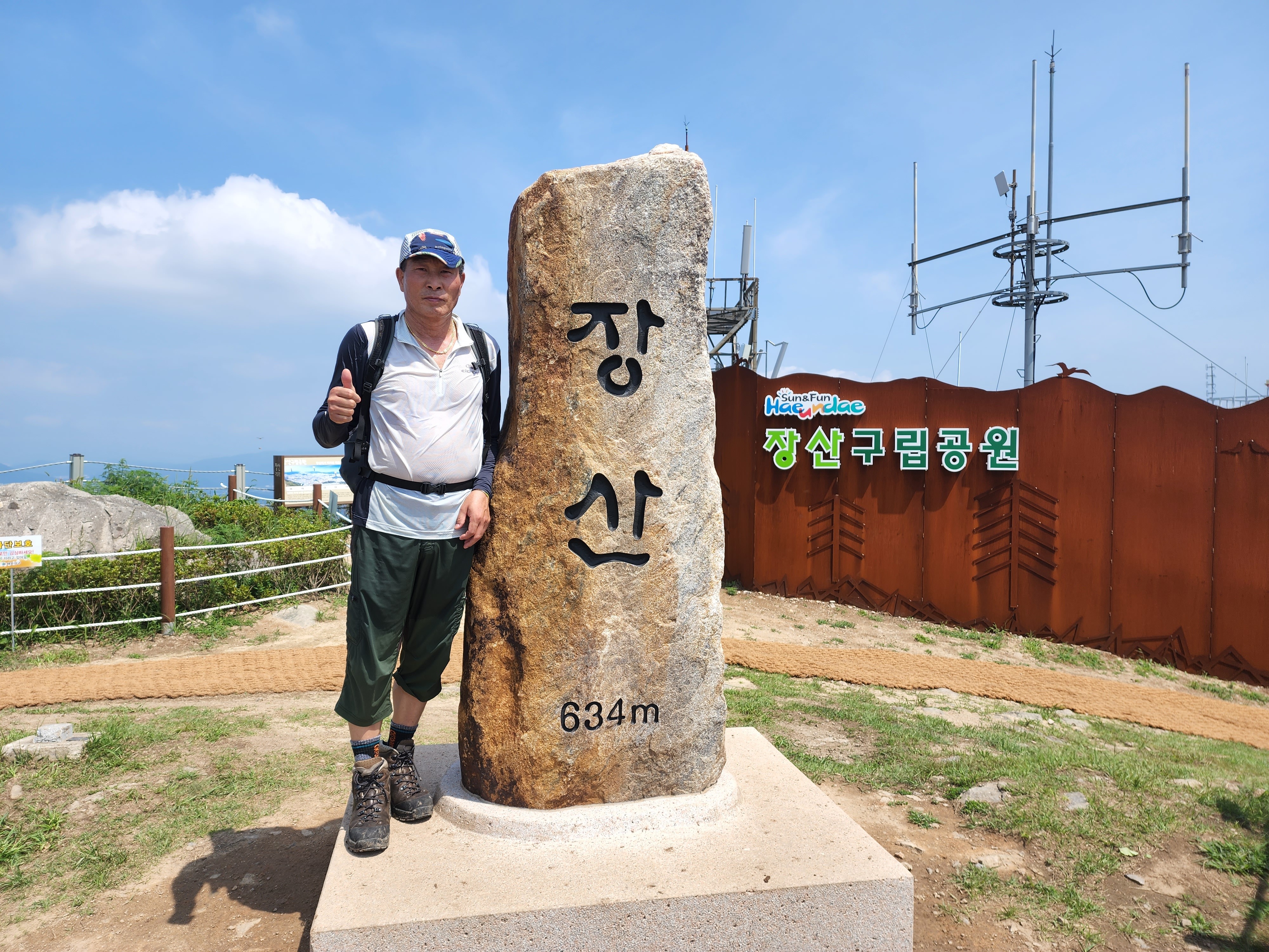산행코스:동백역(2호선)4번출구=>반도보라담벽 우측(50m)=>장산들머리=>옥녀봉(383m)=>중봉(403m)=>구.정상석=>신.정상석(634m)=>구.정상석=>장군바위=>성불사.너덜길 갈림길=>임도=>성불사입구=>벡스코역6번출구