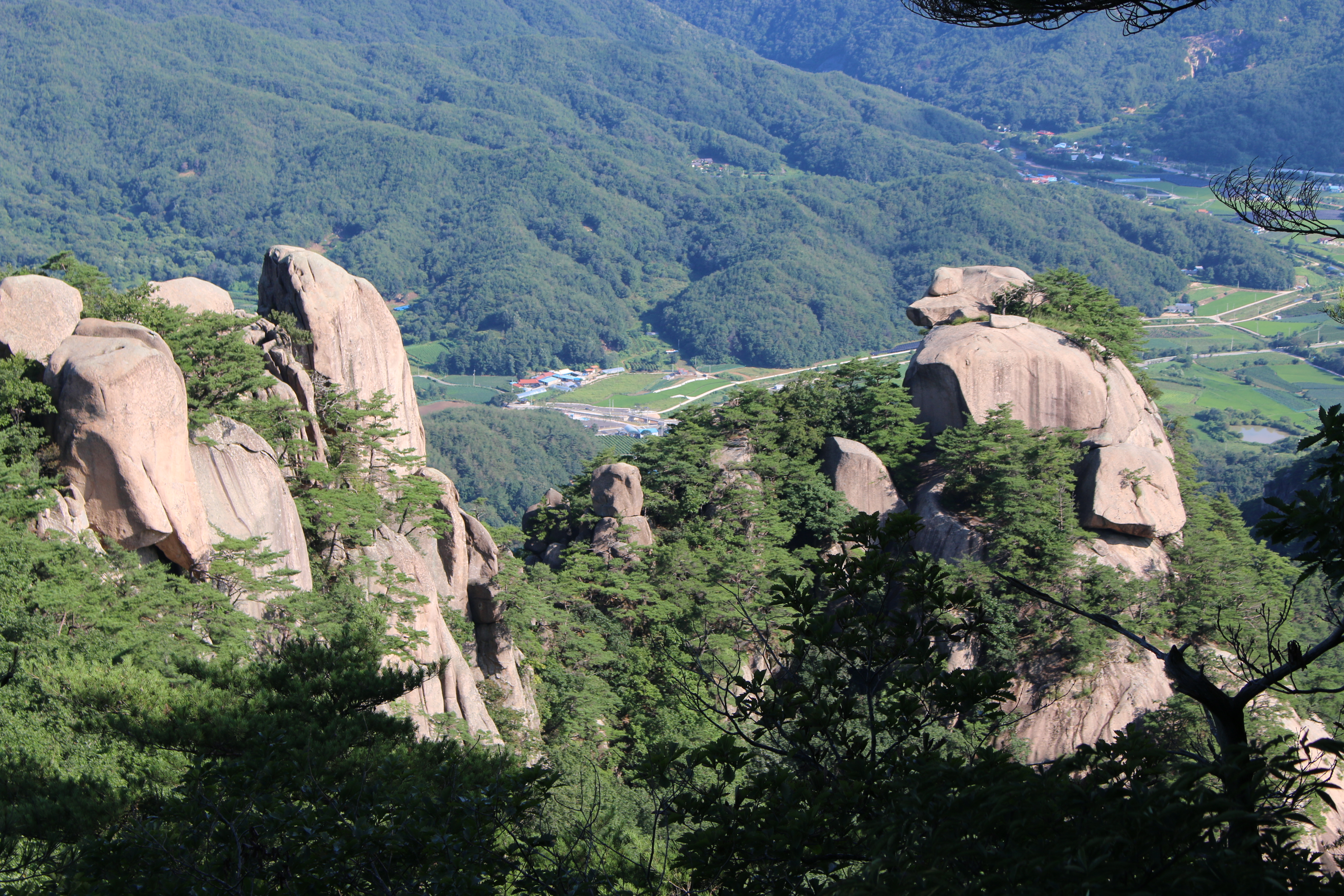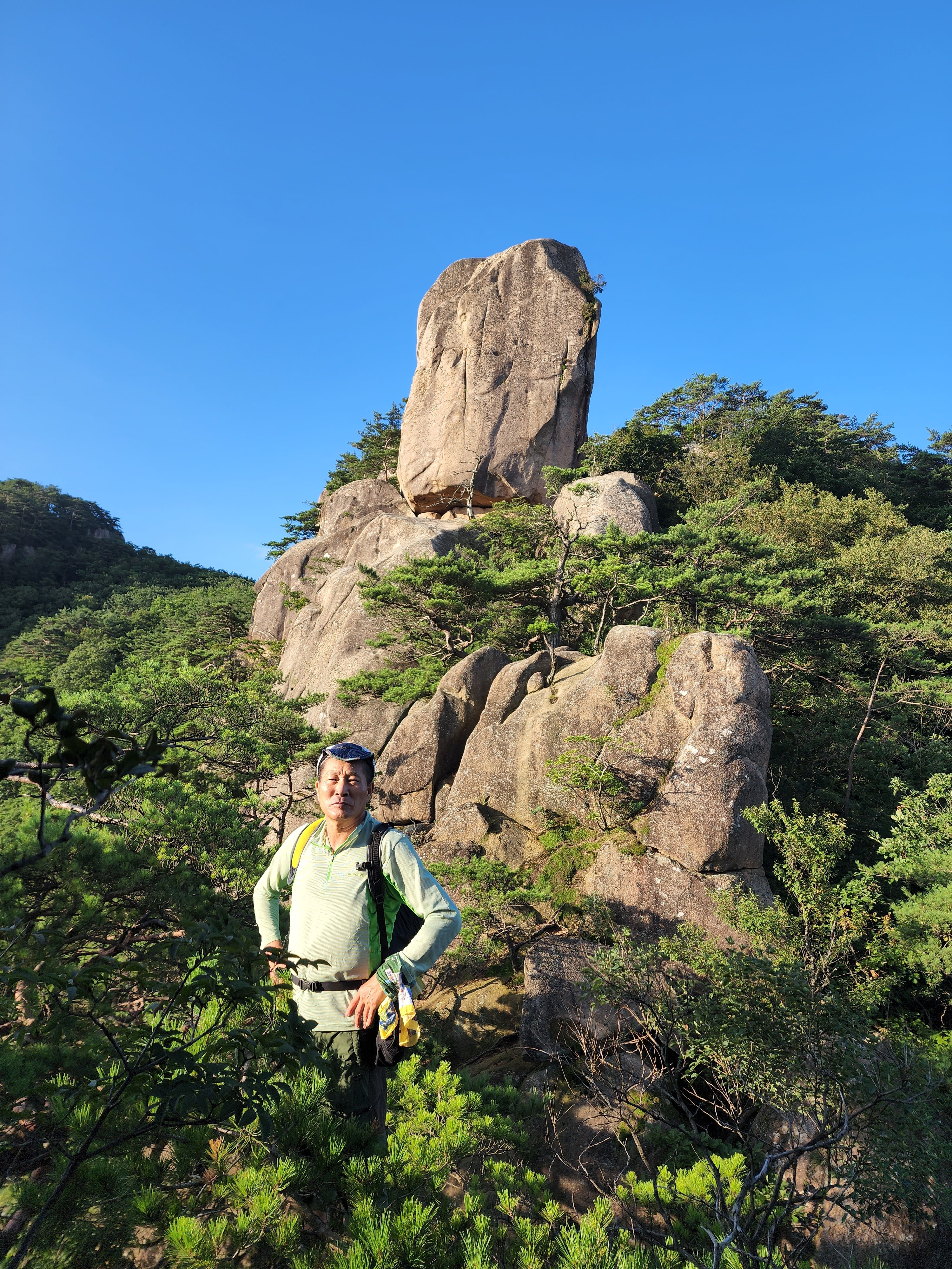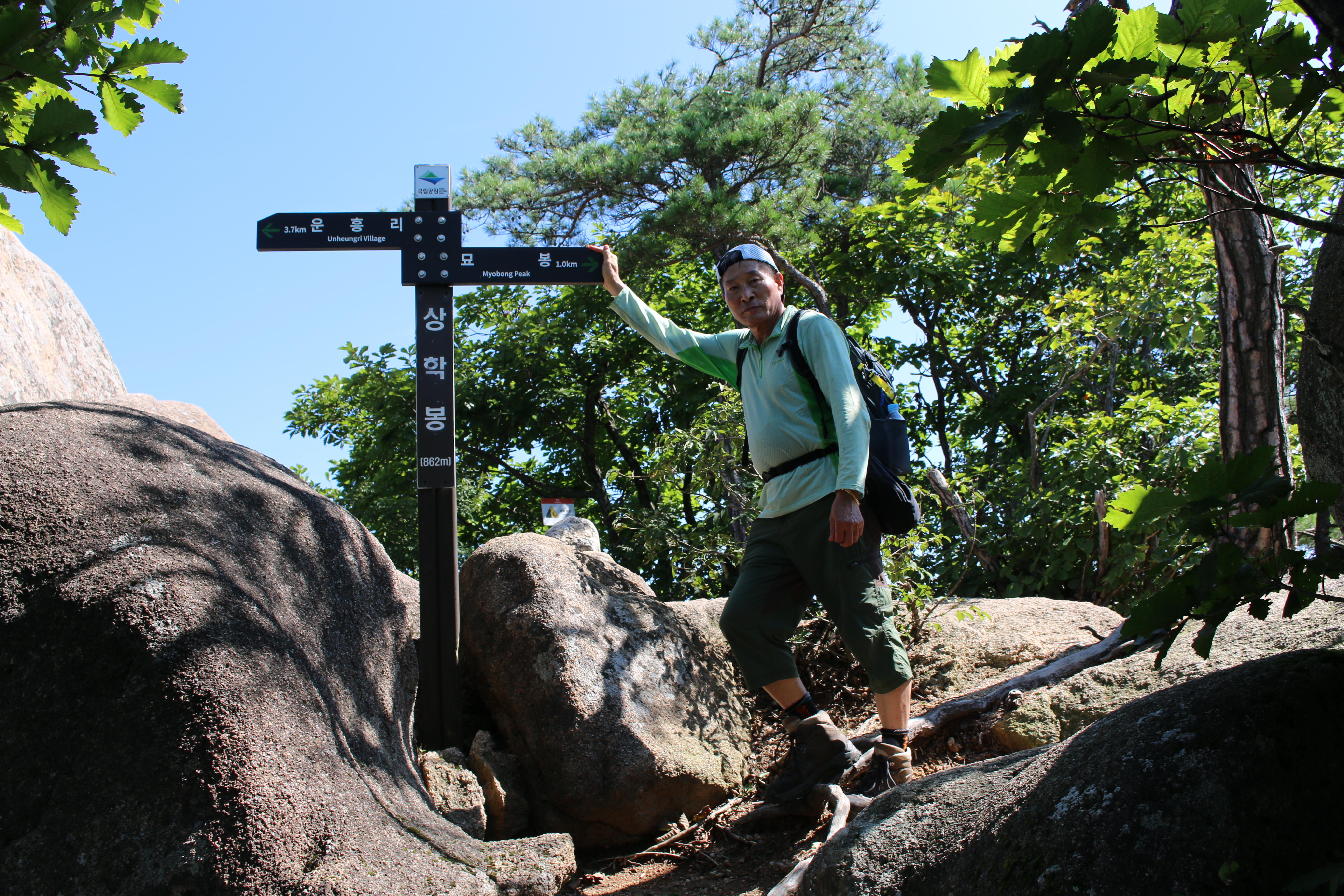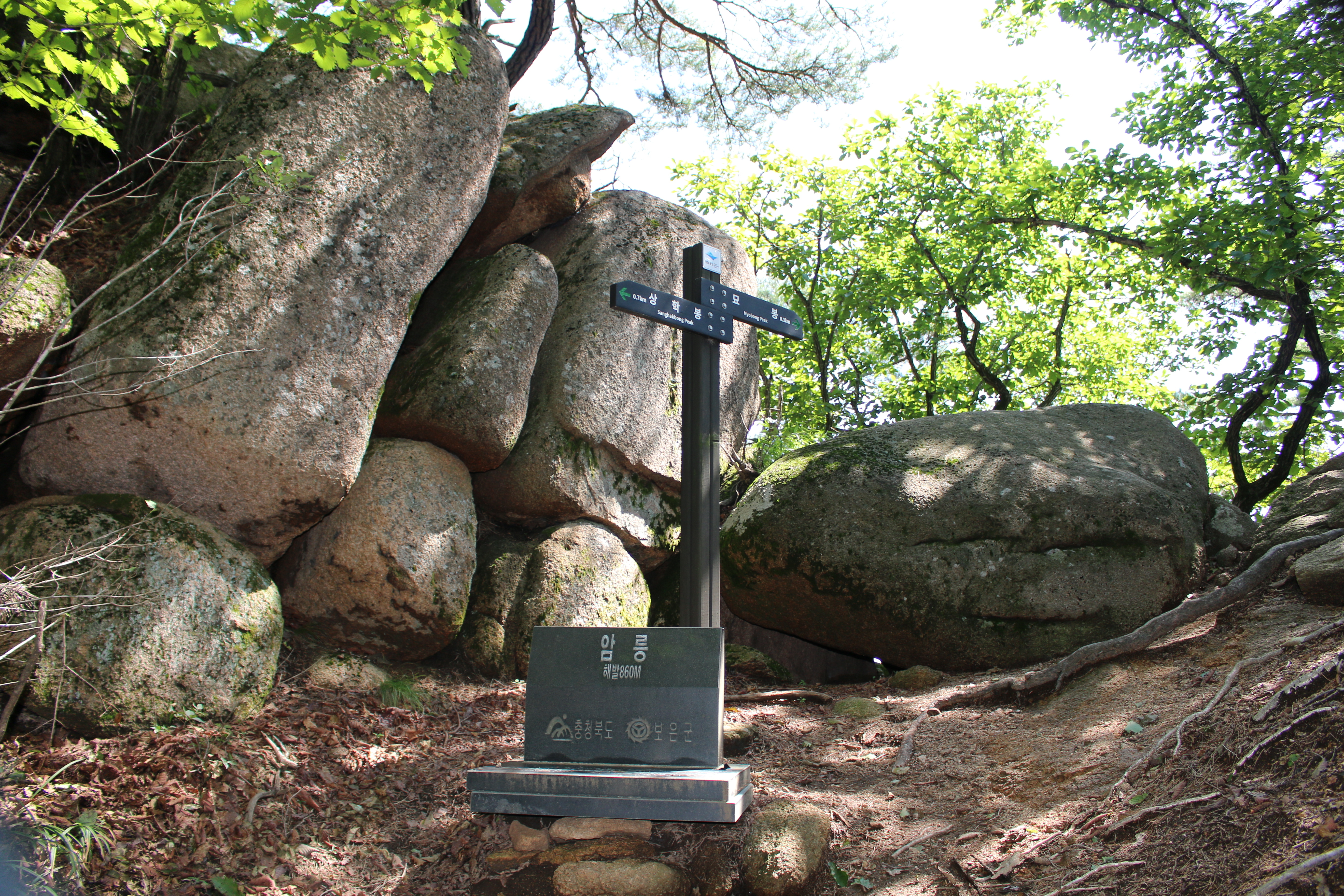 A팀산행코스:묘봉두부마을(주차장)=>윤흥1리마을호관=>살구나무골=>상모봉(772m)주능선=>토끼봉삼거리(위험구간 통제)=>통천문=>주전자바위=>토끼봉(748m)=>또끼봉삼거리(빽)=>상학봉(862m)=>암릉=>묘봉(874m)=>북가치(주능선.미타암방향 계곡길)=>묘봉두부마을 삼거리=>계곡길=>윤흥1리마을회관=>묘봉두부마을(주차장)