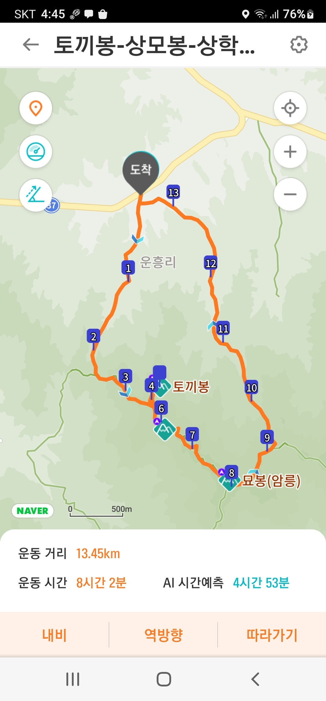 A팀산행거리:13.45km 소요시간:8시간(풍광감상 많은시간)소요