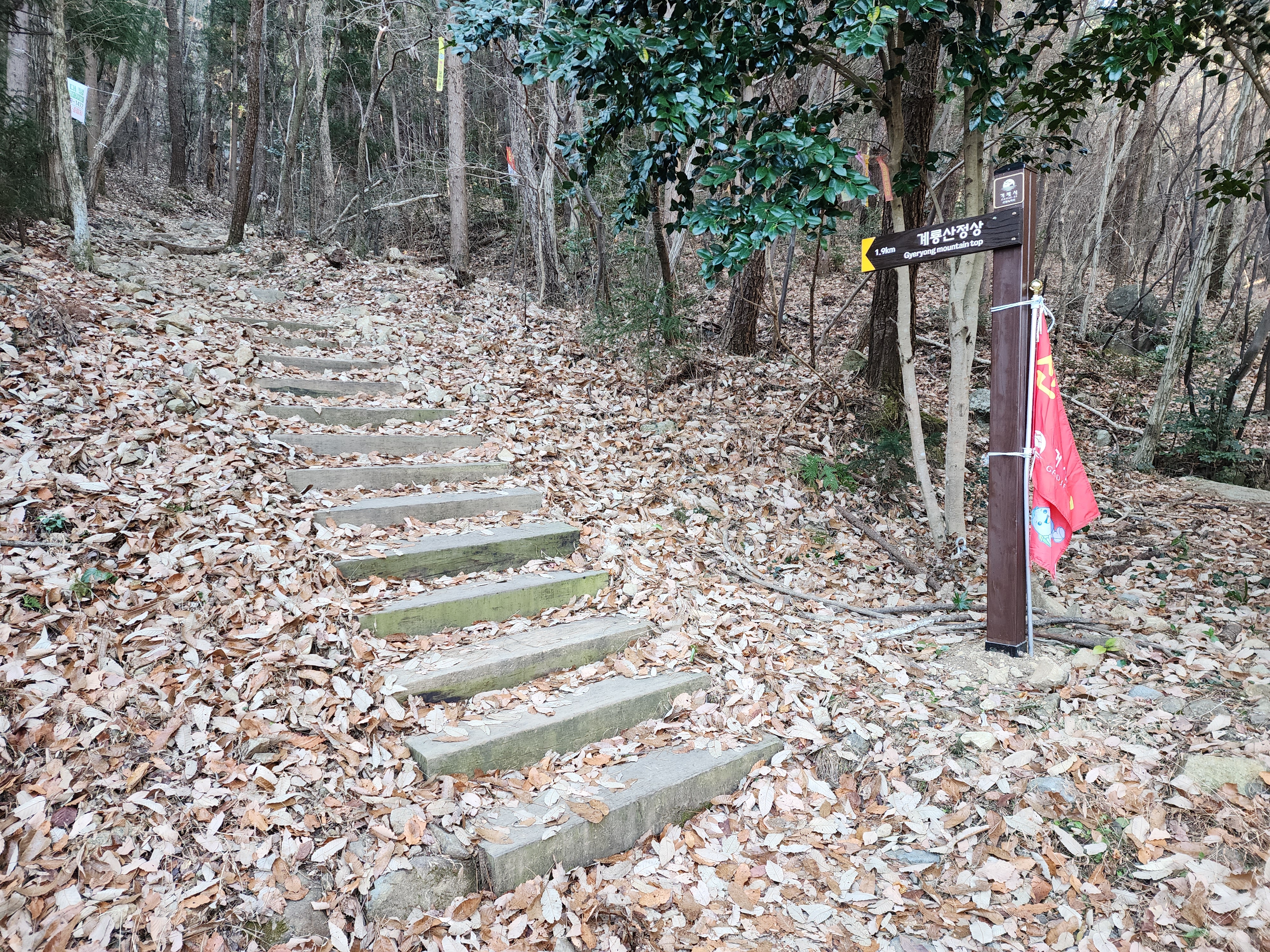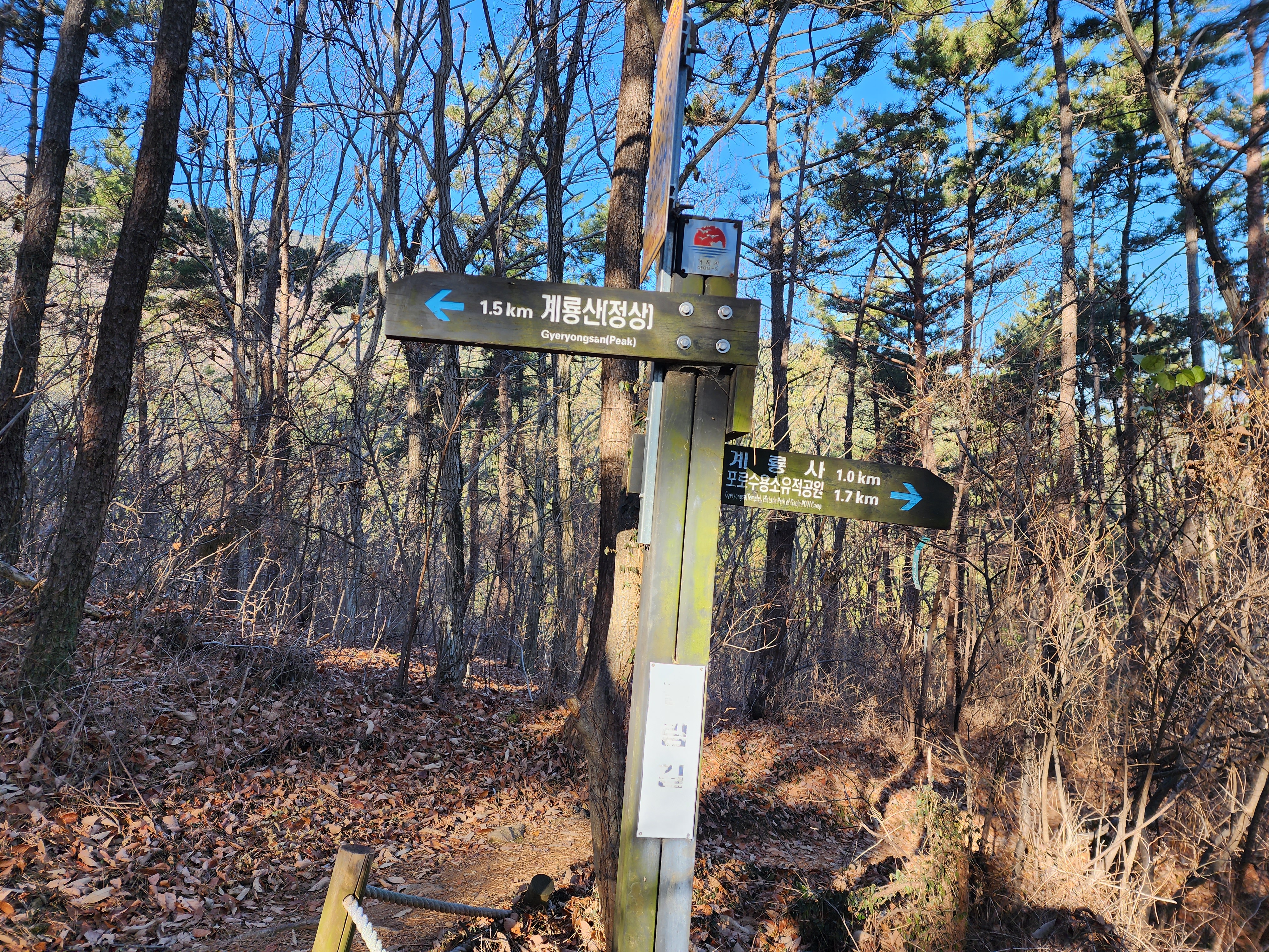 계룡산 등산코스:계룡사 주차장=>임도갈림길=>고자산치.정상 갈림길.=>샘터=>계룡산(556m)=>434봉=>계룡산(556m)빽=>절터=>고자산치.약수터.계룡사.갈림길=>고자산치.정상 갈림길=>임도갈림길=>계룡사 주차장 산행거리:5.17km 소요시간:3시간20분