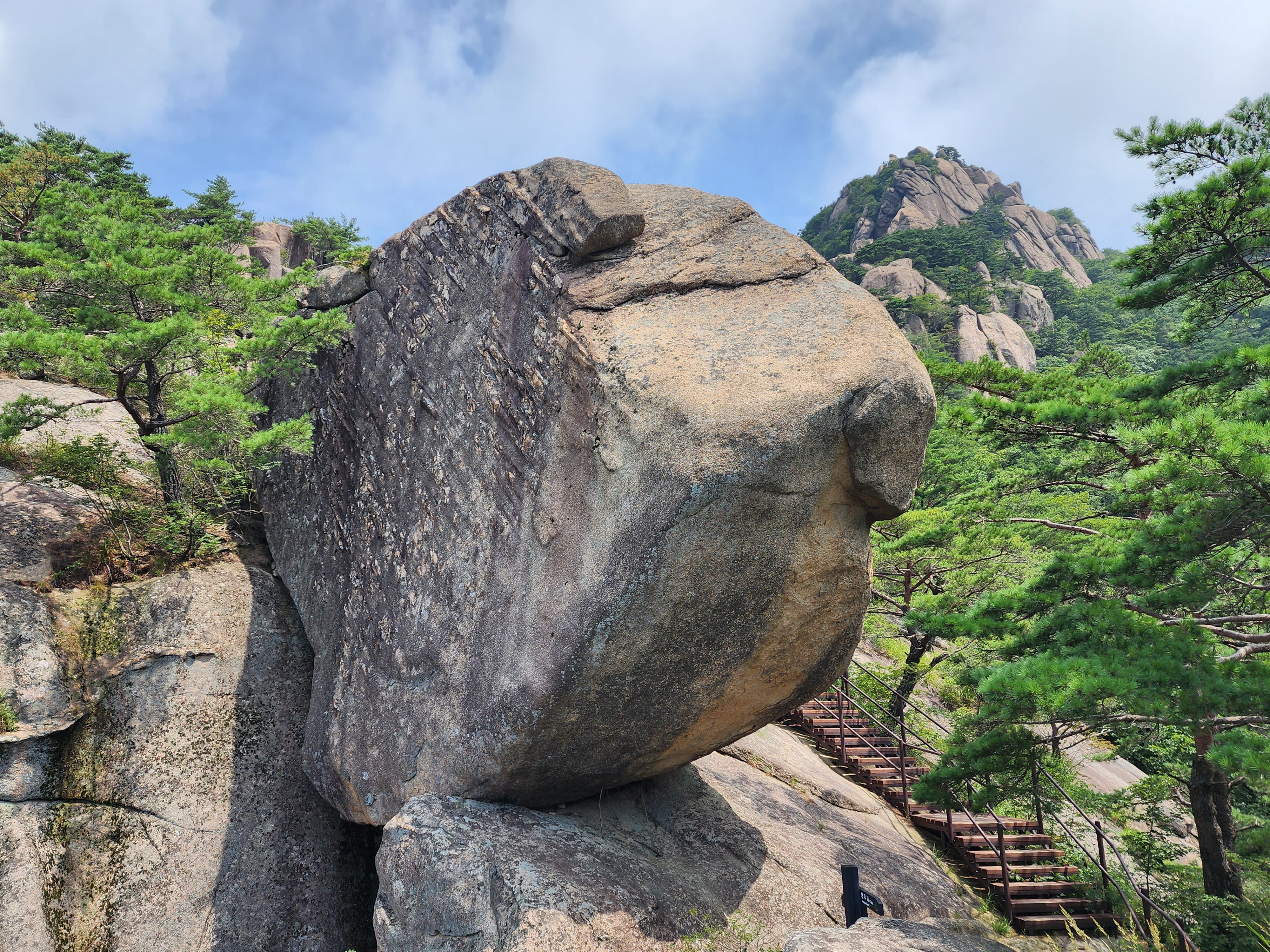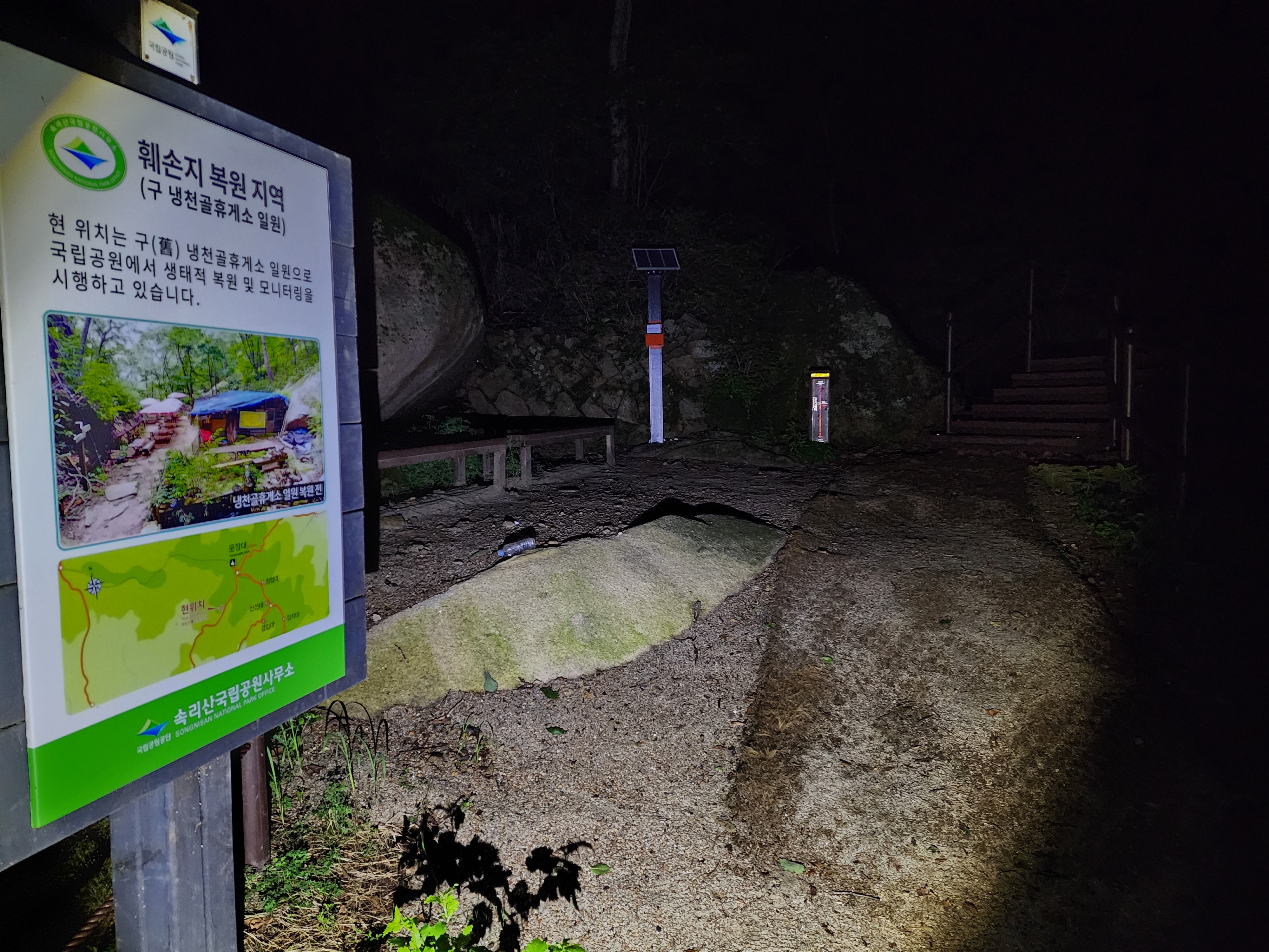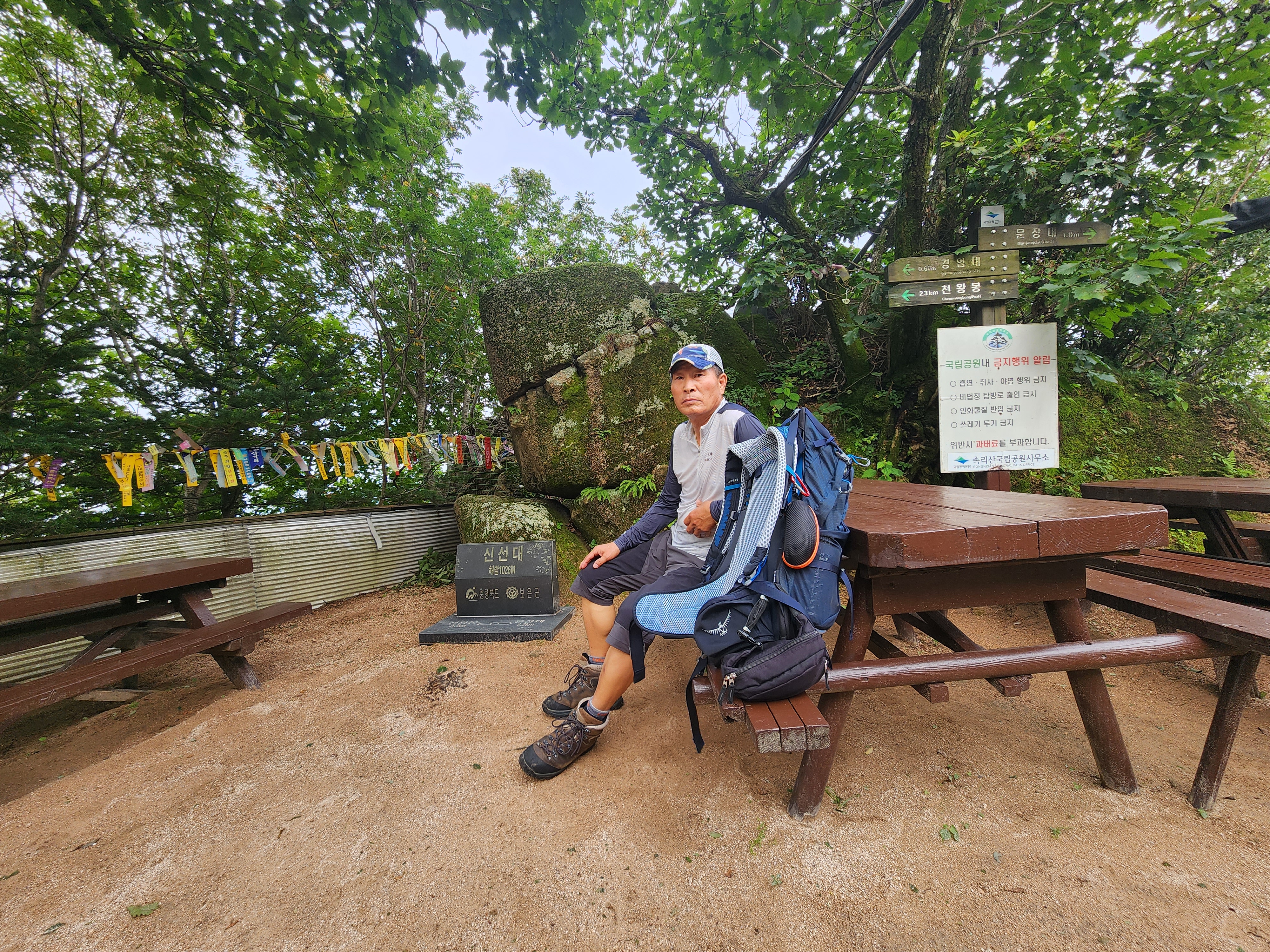 산행코스:법주사주차장=>세조길=>세심정=>복천암=>용바위골 휴게소=>할딱고개(휴게소.철거)=>냉천골(휴게소.철거)=>문장대=>신선대(휴게소)=>신선대.경업대삼거리(법주사가는길)=> 상황석문=> 천왕봉 삼거리(법주사가는길)=> 천왕봉(1058m)=> 신선대.경업대삼거리(법주사가는길)빽 =>관음암=>금강골.휴게소(철거)=>상고암.관음암 삼거리=>비로산장=>천왕봉.상천암.관음암 삼거리=>세심정=>세조길=>법주사주차장 산행거리:20.7km 산행시간:10시간00분 100대명산3차